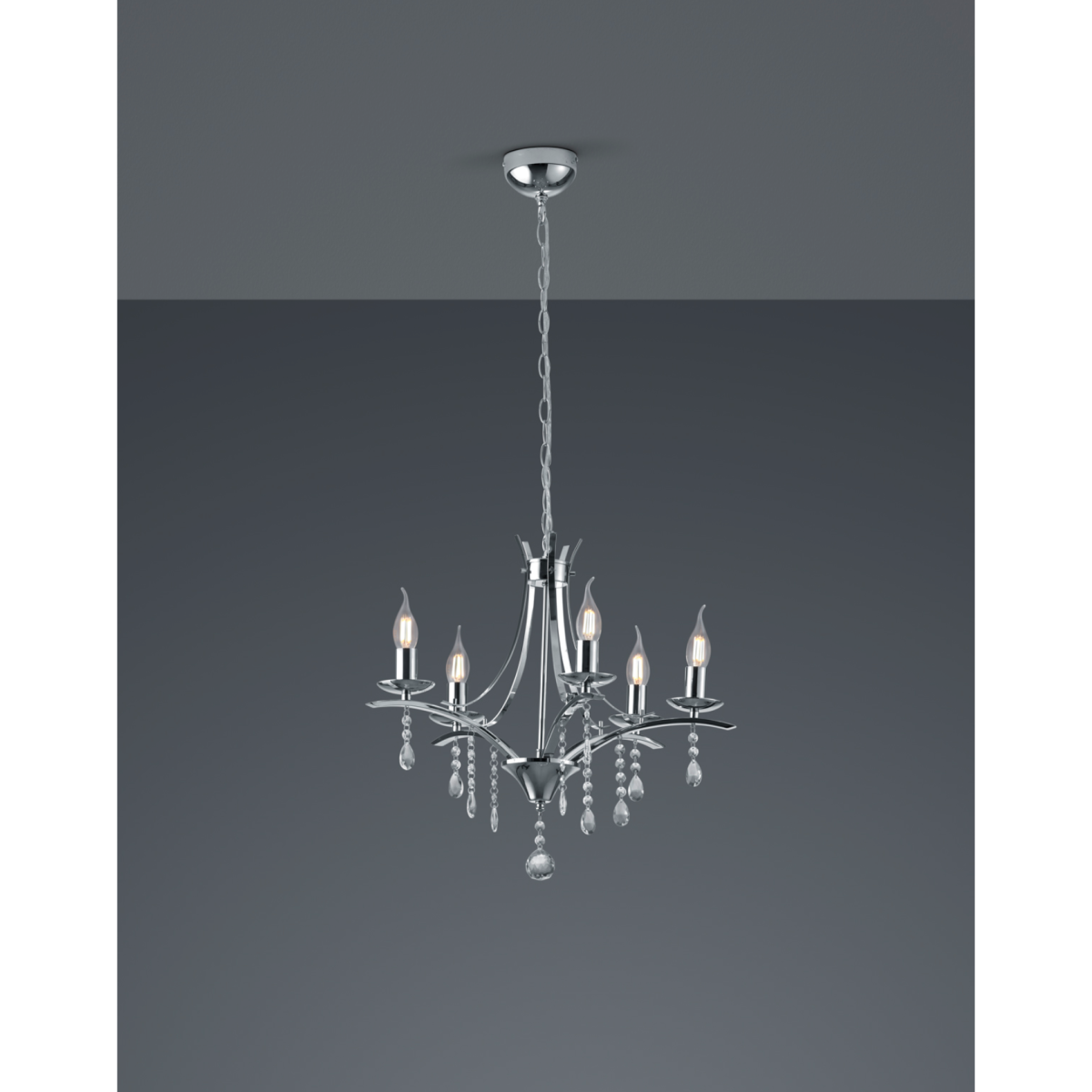 Lucerna függeszték metal króm színben; 5xE14, maximum 40W.