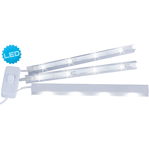 NÄVE POLCVILÁGÍTÁS 3X4LED ÖSSZESEN 1,2W EZÜST
