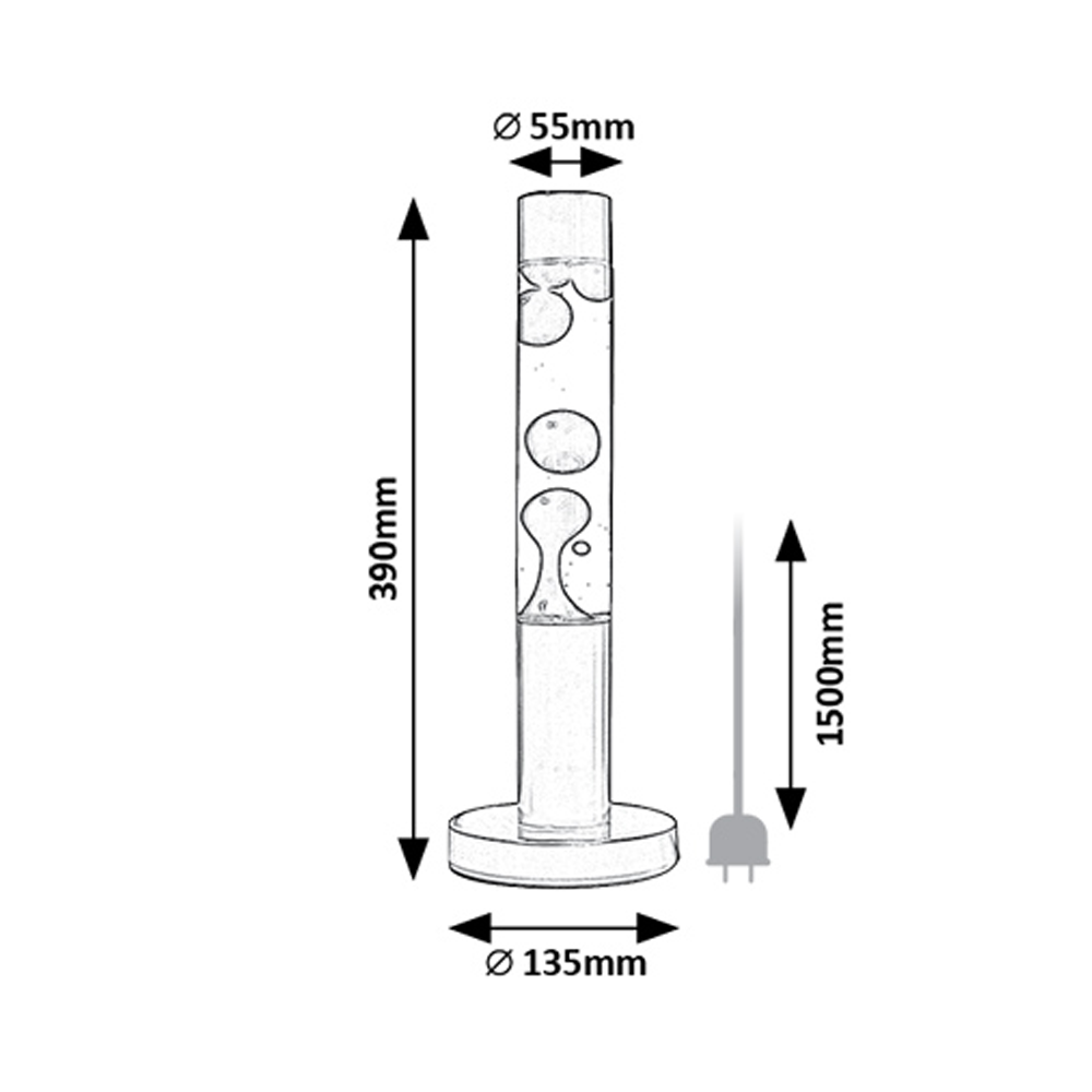 A Rábalux Lavastic LED lávalámpa különleges megjelenésével és nyugtató fényhatásával dekoratív kiegészítője lehet bármely helyiségnek. A karcsú, hengeres kialakítású modell fém testtel és korong alakú talppal készül, fekete színben. A lámpabúrát átlátszó üveg alkotja, belsejében áttetsző folyadékban áramló fekete viasz hoz létre hipnotikus mozgást. A 25 W-os LED fényforrás meleg, 3000 K színhőmérsékletű fényt biztosít, miközben hosszú élettartamot és energiahatékonyságot kínál.