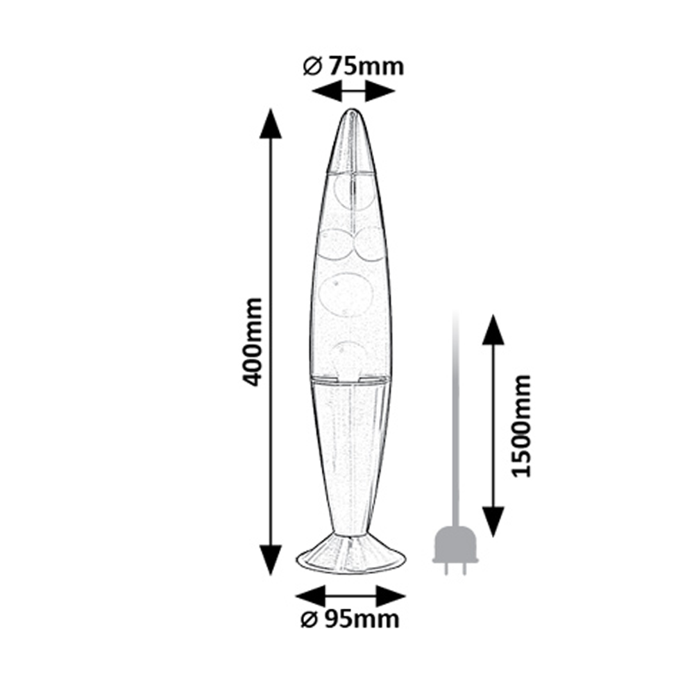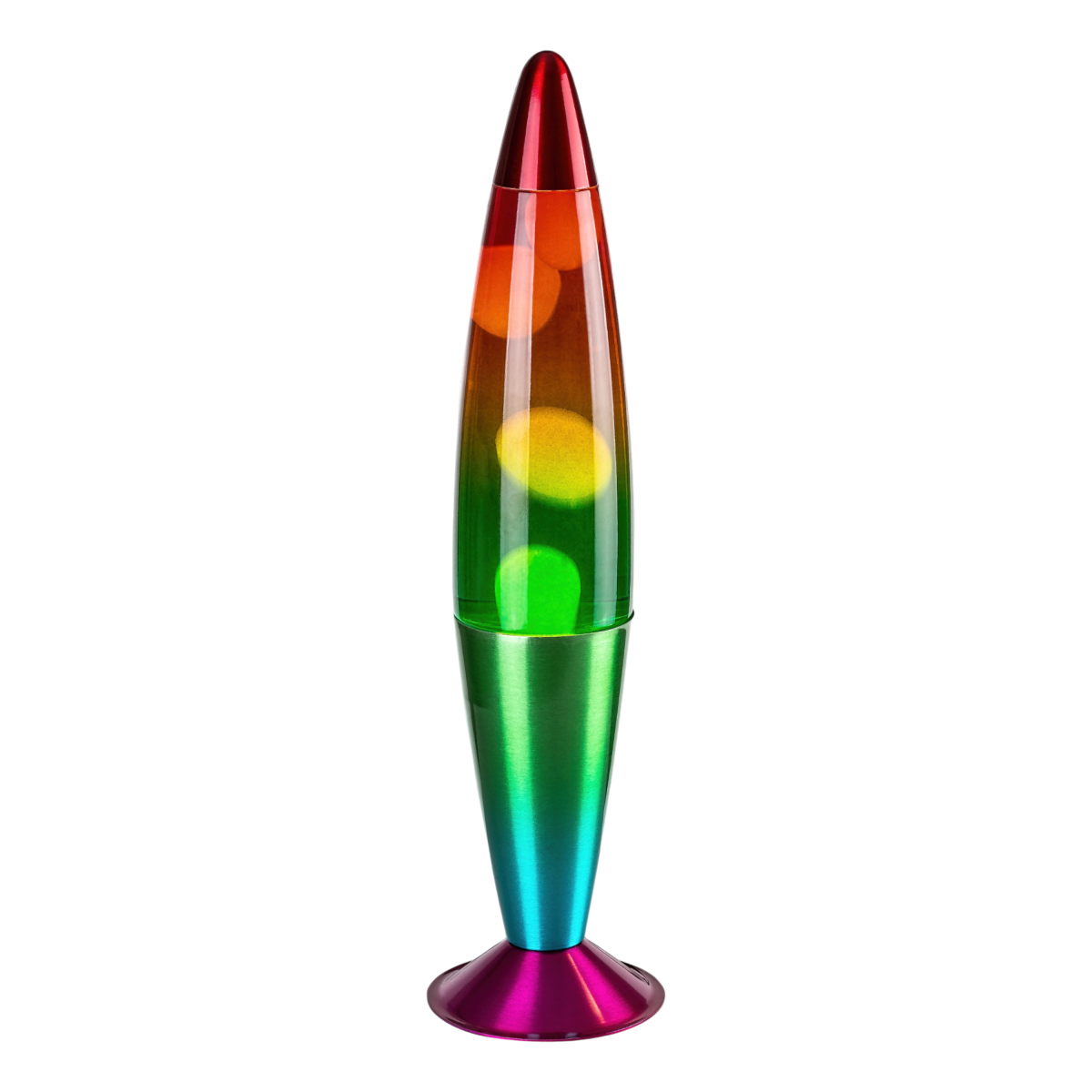 A Rábalux Lollipop Rainbow 2 lávalámpa egyedi szivárványszínű megjelenésével különleges hangulatot teremt bármely helyiségben. Klasszikus, rakétára emlékeztető formáját a fémből készült, többszínű test és dísztalp teszi izgalmassá.