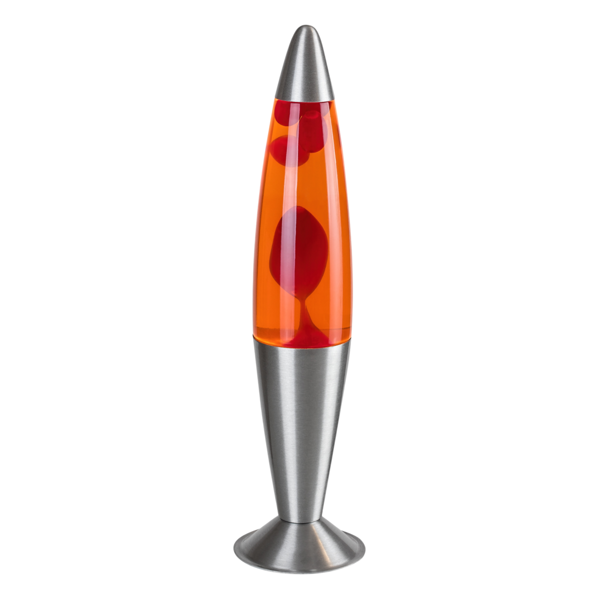 A Rábalux Lollipop 3 lávalámpa klasszikus, rakétára emlékeztető formájával és meleg színhatásaival hangulatos kiegészítője lehet bármely helyiségnek. A lámpatest és a dísztalp fémből, ezüst színben készül, míg a hengeres búra átlátszó üvegből áll. Belsejében narancsszínű folyadékban lassan mozgó, piros viasz teremt különleges, megnyugtató látványt. A lámpa vezetékes kapcsolóval működtethető, és beépített LED fényforrással rendelkezik, amely energiahatékony működést és hosszú élettartamot garantál.