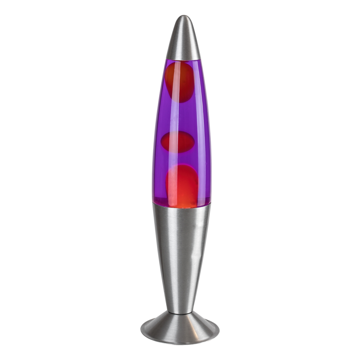 A Rábalux Lollipop 3 lávalámpa klasszikus, rakétára emlékeztető formájával és különleges színvilágával garantáltan feldobja bármely helyiség hangulatát. A fémből, ezüst színben készült lámpatestet és korong alakú dísztalpat átlátszó üvegbúra egészíti ki. Belsejében lila folyadékban lassan áramló sárga viasz teremt varázslatos fényhatást. A lámpa vezetékes kapcsolóval működtethető, beépített LED fényforrással, amely hosszú élettartamot és energiatakarékos működést biztosít.