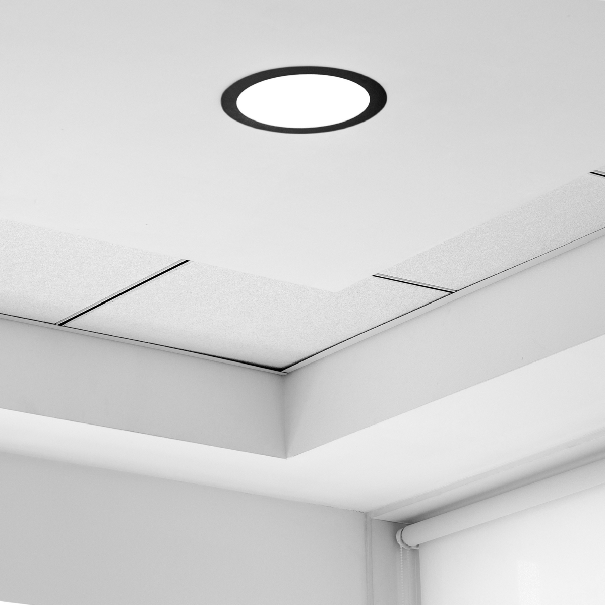 A letisztult, matt fekete kivitel kontrasztos és dekoratív kiegészítőként emeli ki a LED panelt, miközben a szerszám nélküli pattintós rögzítés gyors és egyszerű telepítést biztosít.