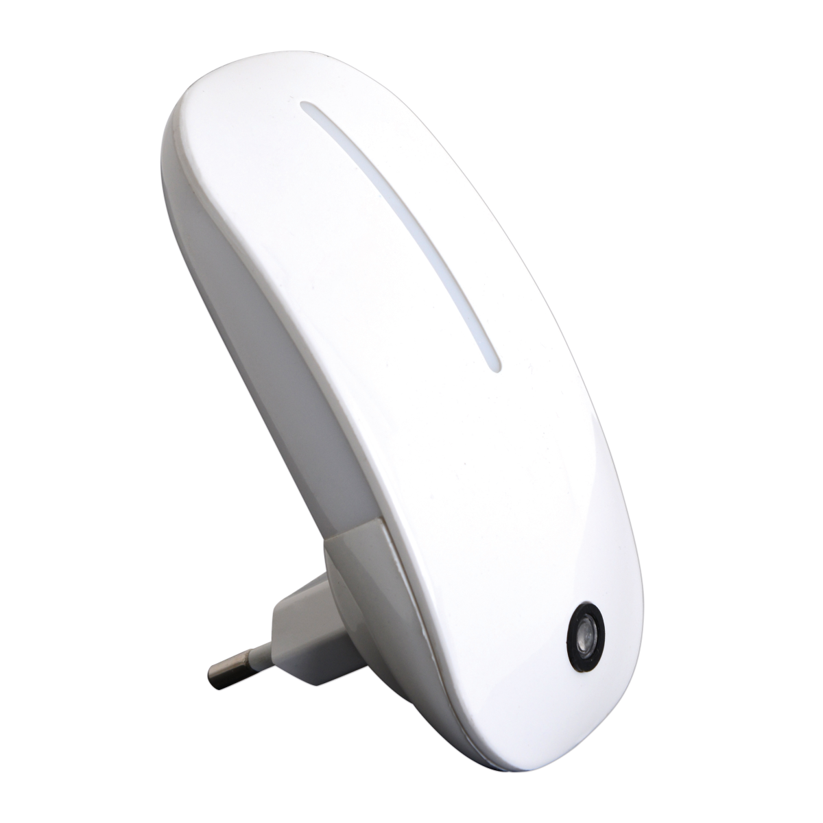 A LED funkcionális megjelenésű, konnektorba helyezhető éjszakai irányfény, beépített fényérzékelővel - fehér színű műanyag lámpatest és áttetsző műanyag fényvető lámpabúra. Az alkonykapcsoló sötétben automatikusan felkapcsol. A termék LED fényforrással rendelkezik, ami 0,6 W teljesítmény mellett 40 lumenes fényerőt és 6000 Kelvines, a sötétben álomszerű hideg fehér színű fényt biztosít.