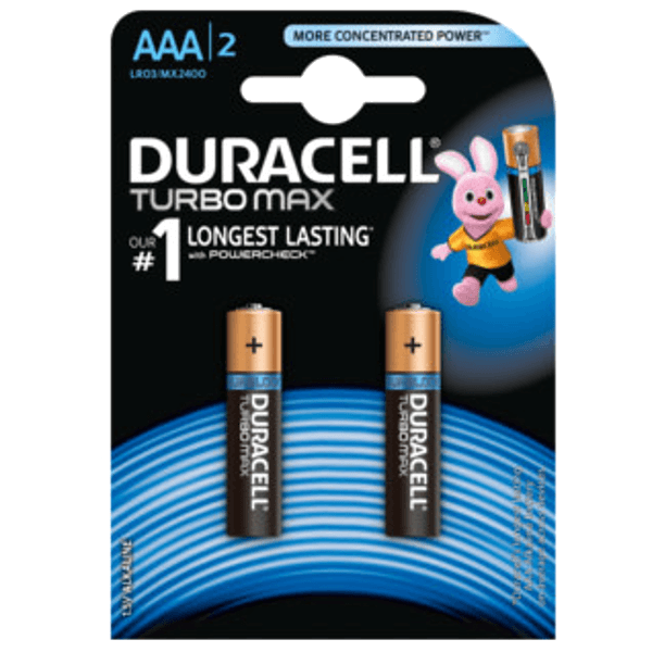 Duracell Turbo Max AAA 2db. A Duracell Turbo Max elemek akár 70%-kal tovább tartanak, és arra tervezték őket, hogy a legjobbat hozzák ki a nagy energiaigényű készülékekből, mint a digitális fényképezőgépek és a gyakran használt készülékekből, mint az MP3 lejátszók, távvezérelt játékok és videojáték vezérlők. A Duracell Turbo Max az egyetlen olyan elem, amely Powercheck funkciót biztosít, lehetővé téve a fogyasztóknak az egyes elemekben elérhető energia-mennyiség megismerését. Digitális fényképezőgépekben használva, Duracell alkáli AA 4 db-os kiszerelésű elemekkel összehasonlítva. 1,5 V, alkáli elem, Frissesség: 10 év, a csomagban lévő elemek száma: 2db.