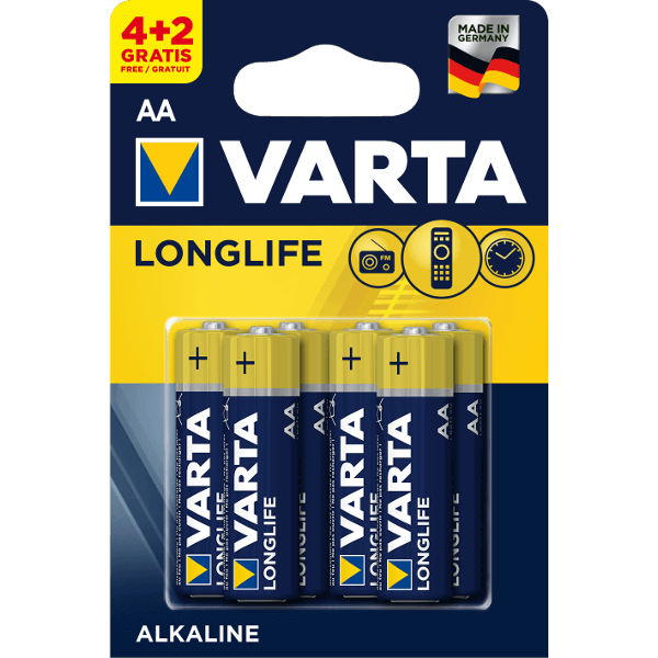 VARTA Longlife alkáli ceruzaelem, AA 4+2BL 1,5 V LR03