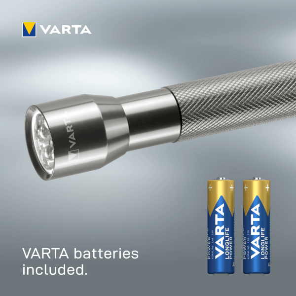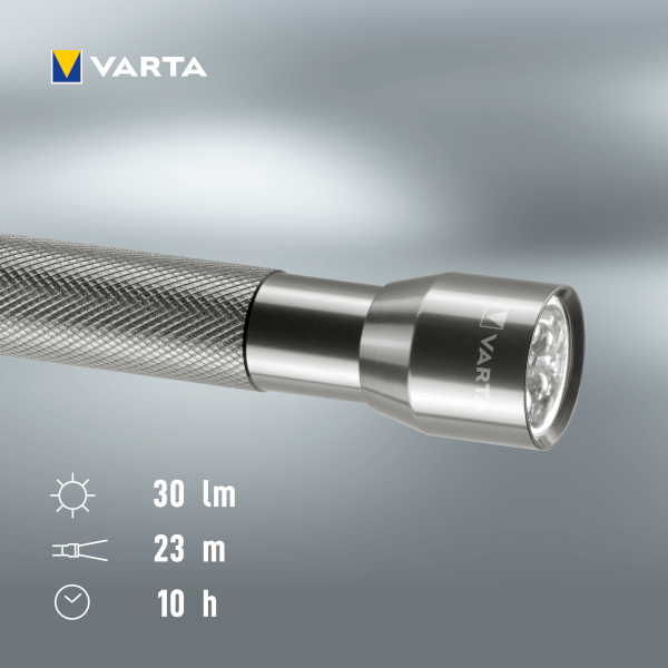 Varta Multi LED elemlámpa alumíniumból. Csúszásmentes markolattal rendelkezik. Jellemzői: fénytávolság: 23m. 30LM, 5x5mm-es LED.