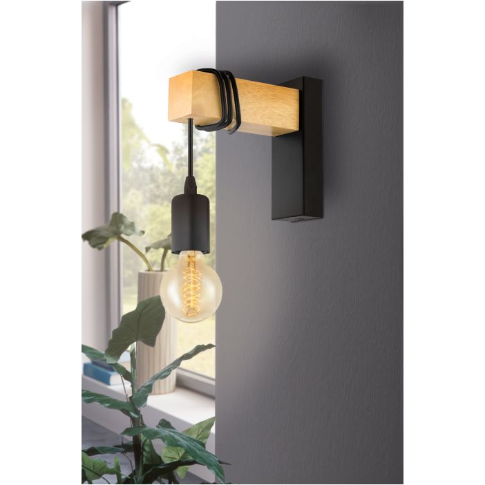 EGLO TOWNSHEND FALILÁMPA E27 1X10W IP20 FEKETE / TÖLGY