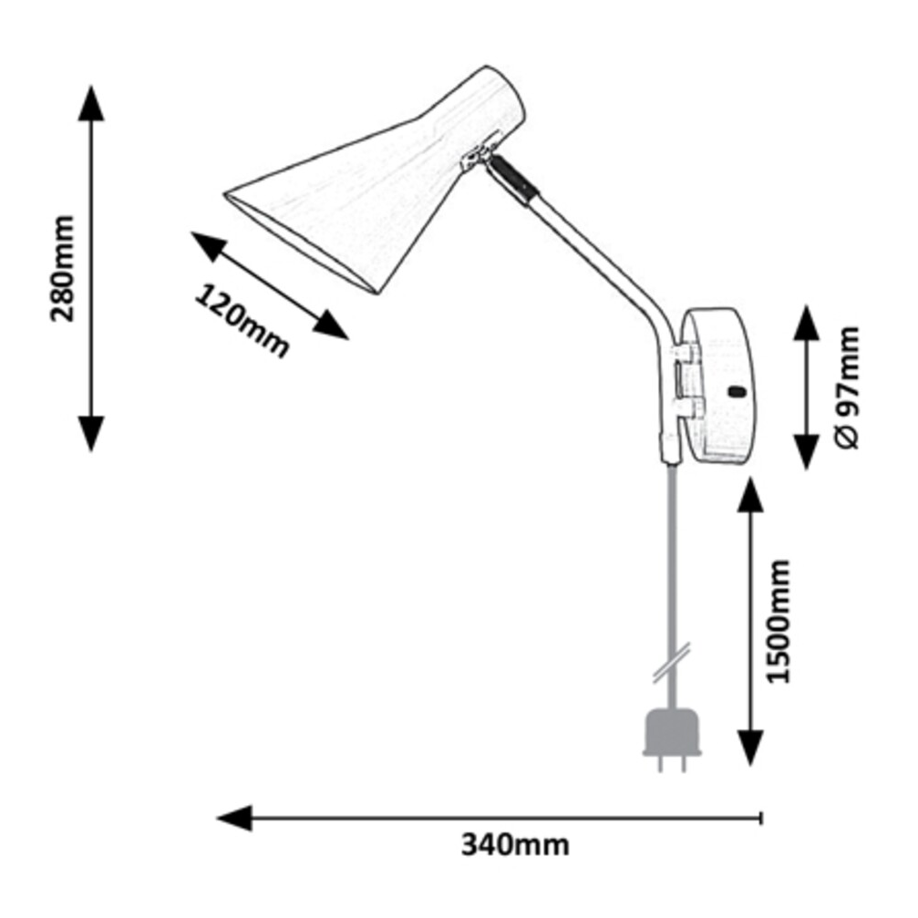 Az indusztriális stílusú Alfons fali lámpa nappalink, hálószobánk vagy dolgozószobánk berendezésének praktikus darabja lehet. A fehér színben, teljes egészében fémből készült modell kerek dísztalp segítségével rögzíthető a falra, és vezetékes kapcsolóval működtethető. A vezeték anyaga textil. A lámpa egy darab, legfeljebb 25W teljesítményű fényforrással használható, a foglalat típusa E27. Ha a meghitt, otthonos hangulatot szeretnénk erősíteni a szobában, válasszunk a lámpához meleg fehér fényű fényforrást. Az Alfons fali lámpa méretei a következők: magassága 280 mm, a búra átmérője 120 mm, a lámpa faltól mért távolsága 340 mm, beépítési átmérője 97 mm.