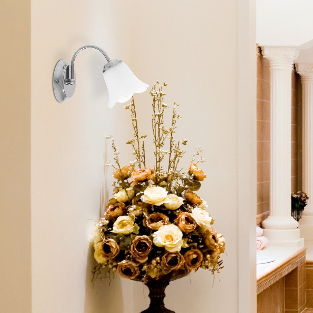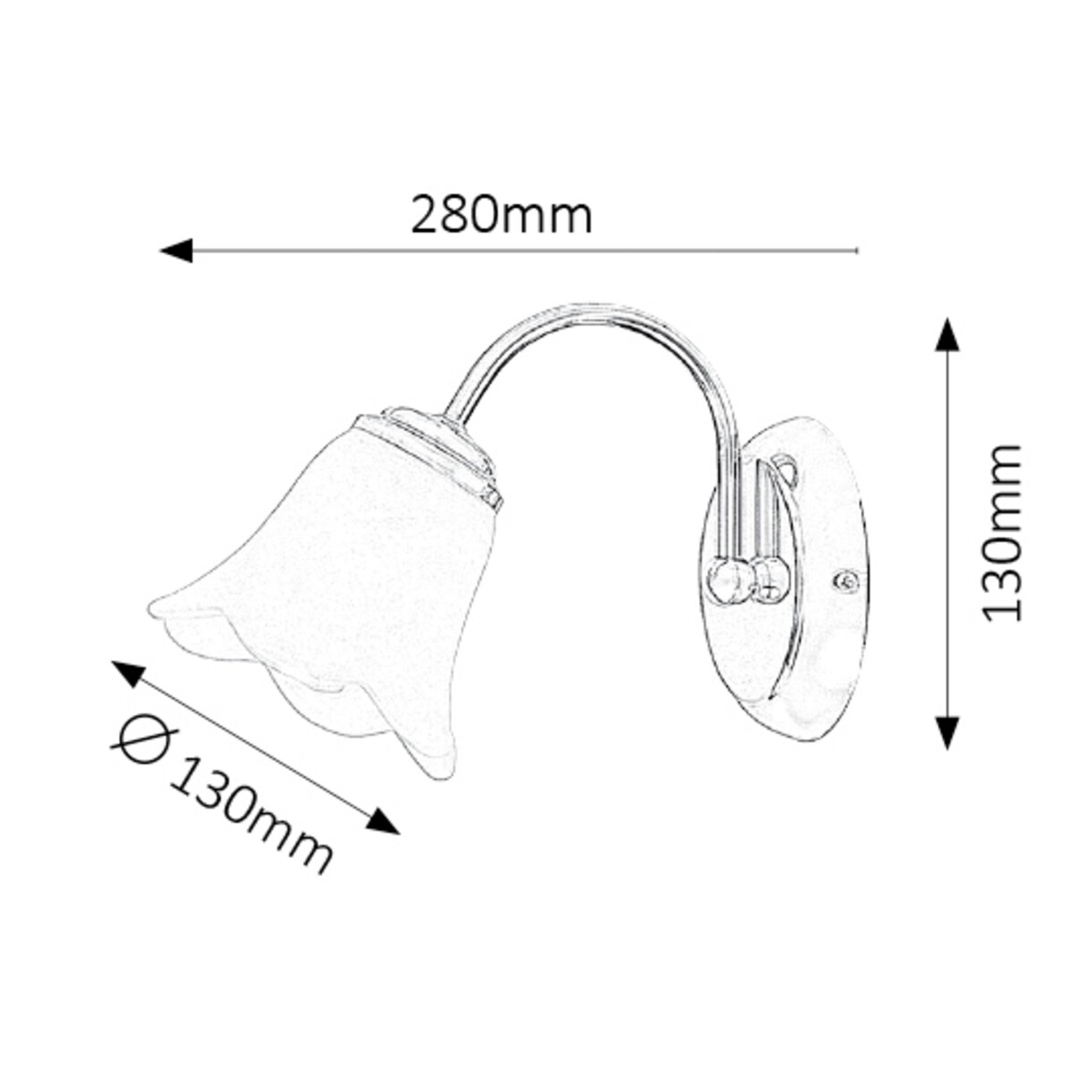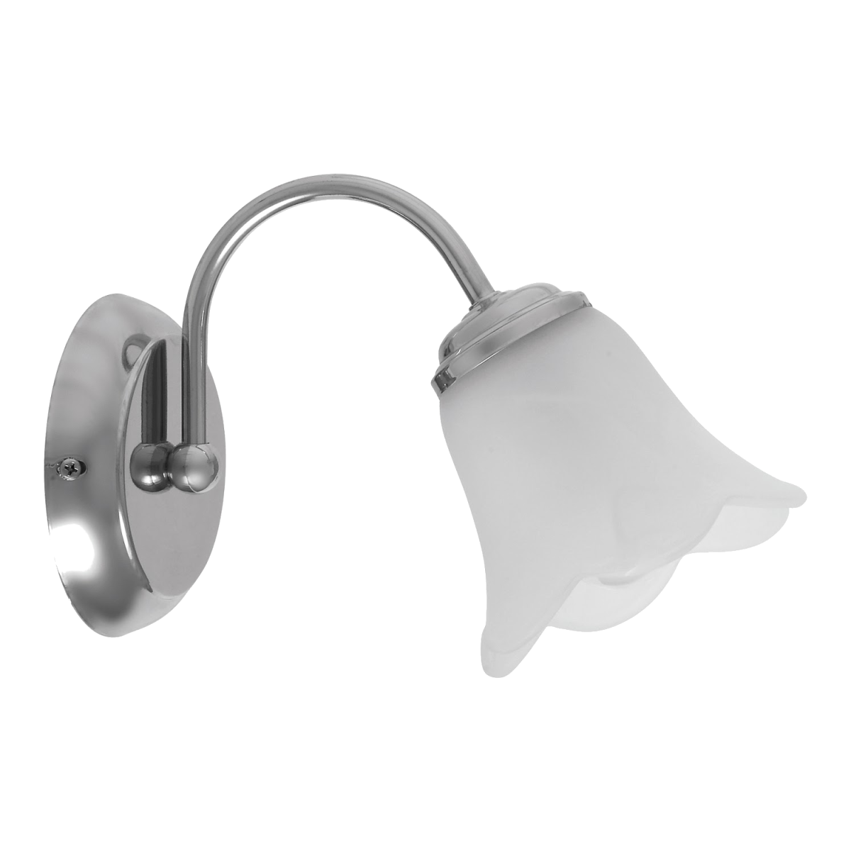 Klasszikus megjelenésű fali lámpa 1 db E14-es foglalattal, mely maximum 40W teljesítményű halogén vagy energiatakarékos fényforrással használható. 28 cm kinyúlású, 13 cm magas, króm színű fémből készített lámpatest 13 cm átmérőjű, fehér opálüveg burával.