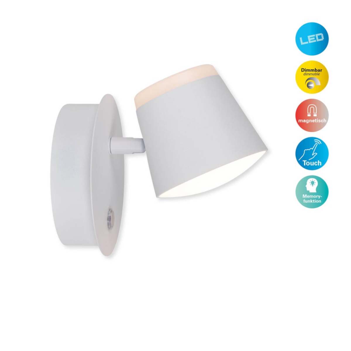 A mágneses tartónak köszönhetően könnyen rögzítheted és leveheted, akár ideiglenesen is. Könnyen elhelyezhető a lakótérben akár ideiglenesen is mivel a tartó hátlapja egy ragsztható betétet is tartalmaz, de a lámpa csavarral is rögzíthető. A lámpa fényereje érintőkapcsolóval fokozatmentesen szabályozható, a memóriafunkció pedig megjegyzi a legutóbb beállított fényerőt. A fény felfelé és lefelé is irányítható, így többféle használati módot kínál.
