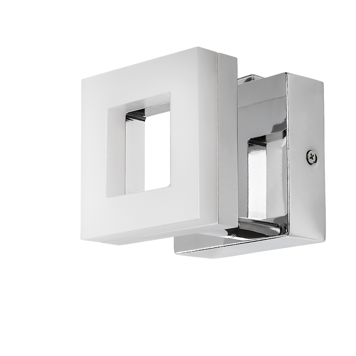 A Blas fürdőszobai fali lámpa a Rábalux saját tervezésű modellje, amely természetes fehér fényével tiszta, modern hatást kelt a fürdőben. A fémből készült, krómszínű lámpát középen kivágott, négyzet alakú lámpafej és fehér műanyagbúra alkotja, valamint krómszínű, szögletes dísztalp segítségével rögzíthető a falra. A lámpafej felfelé és lefelé dönthető, így a Blas fényét igény szerint irányíthatjuk. A lámpa működtetéséhez szükséges billenőkapcsoló a dísztalp alulsó részén kapott helyet. Ez a modell az F energiaosztályba tartozó beépített LED fényforrással rendelkezik, amelynek teljesítménye 5 W, fényereje búrával 530 lumen, búra nélkül 630 lumen. A 4000 K színhőmérsékletű fényforrás élettartama 30 000 óra. A Blas IP44-es védettsége garantálja, hogy a lámpa 1 mm-nél nagyobb szilárd tárgyak behatolása ellen, valamint bármilyen irányból fröccsenő víz ellen védett. A lámpafej mérete 90x90 mm, a lámpa faltól mért távolsága 160 mm, beépítési átmérője 90 mm.