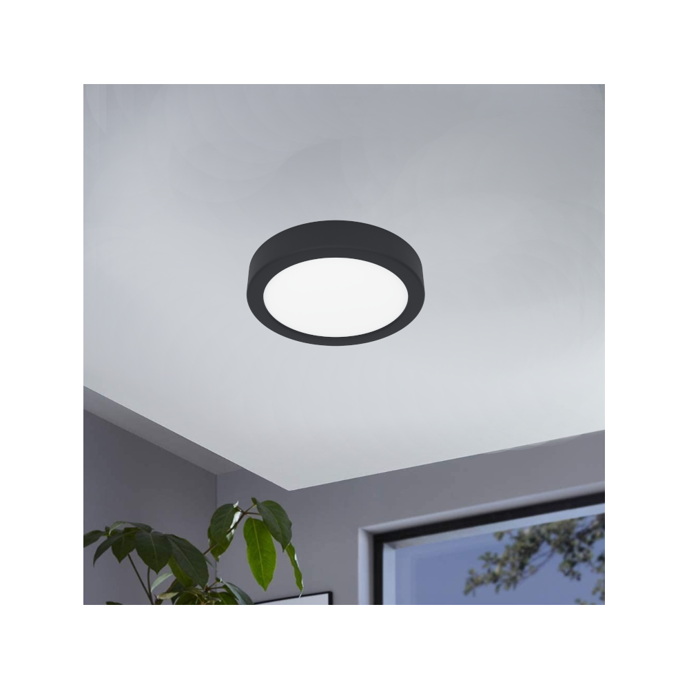 LED mennyezeti lámpa fekete színben; 11W, 1350LM, 3000K, IP44.