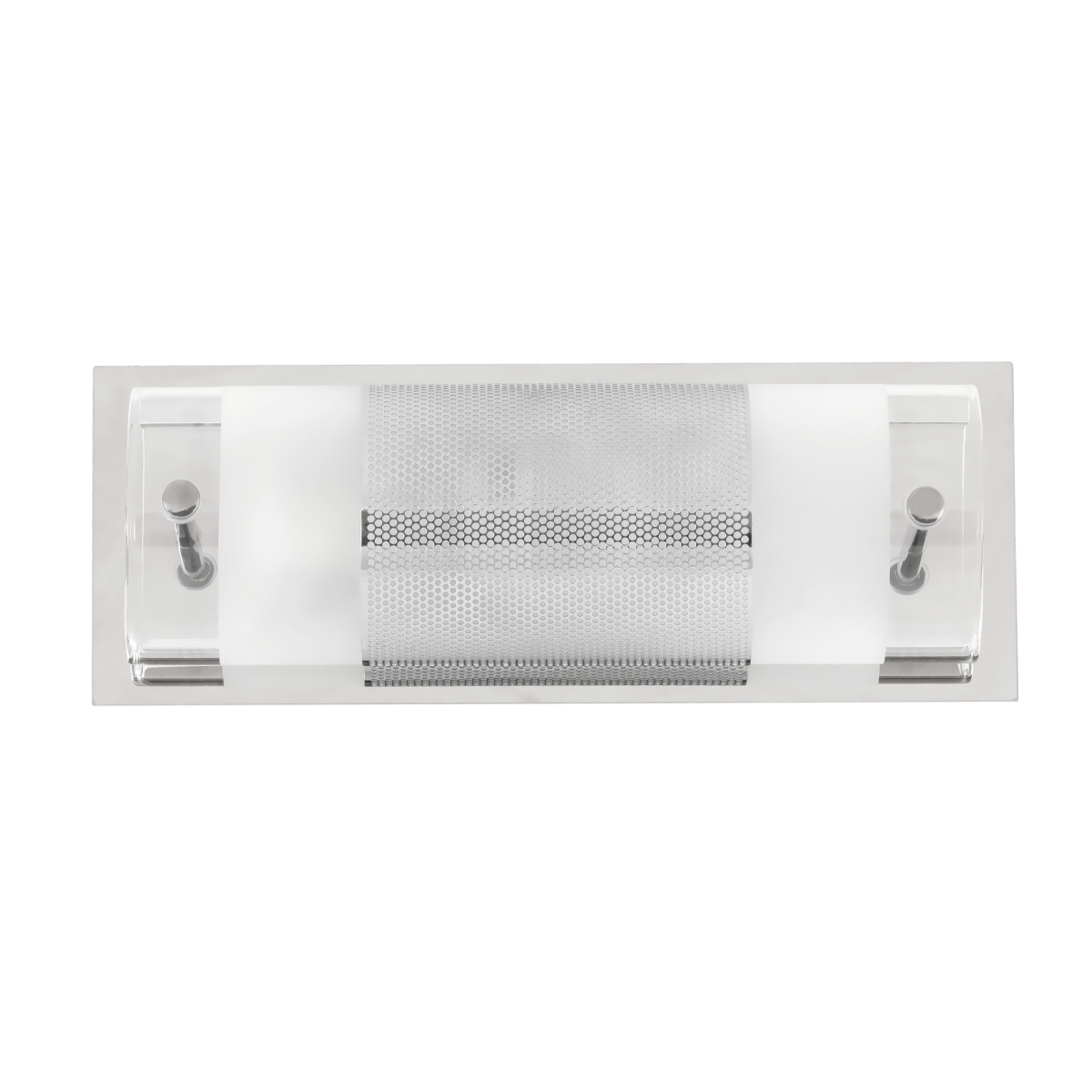 Modern megjelenésű, fali- és mennyezeti lámpaként egyaránt használható lámpatest, 1 darab E14-es foglalattal. 24 cm széles, króm színű fémből készített lámpatest, opálüveg és áttetsző, hálós fém búrával. A lámpatest E14-es foglalatú, max. 40W teljesítményű fényforrással használható.
