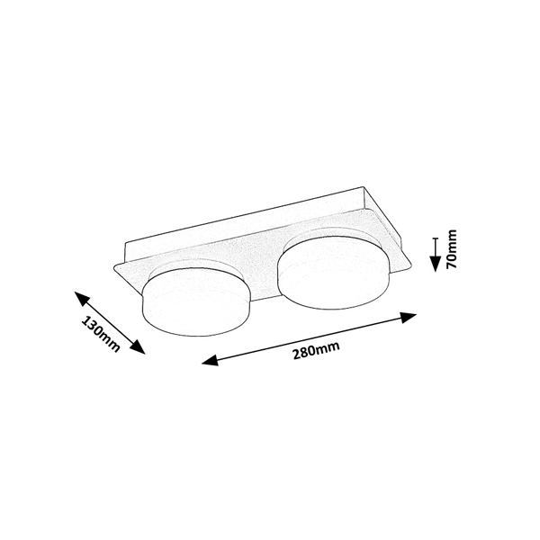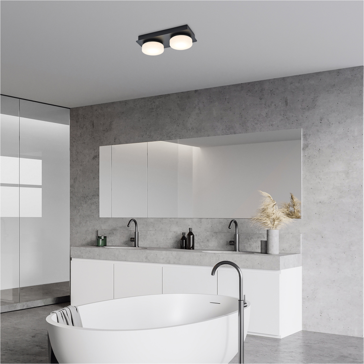 Az egyszerű formatervezésű Attichus kettes fürdőszobai mennyezeti lámpa szinte bármely modern fürdőszobába praktikus választás lehet. A fémből készült matt fekete lámpát kerek, fehér műanyagbúrák egészítik ki, és téglalap alakú dísztalp segítségével rögzíthető a mennyezetre. A letisztult dizájnnak és a fekete-fehér színkombinációnak köszönhetően ez a modell számos enteriőrbe remekül illeszkedik. Az Attichus az F energiaosztályba tartozó beépített LED fényforrásokkal rendelkezik, amelyek összteljesítménye 11 W, fényerejük búrával 1200 lumen, búra nélkül 1430 lumen, élettartamuk pedig 30 000 óra. A 4000 K színhőmérsékletű fényforrások természetes fehér fénnyel világítanak, ami modern, tiszta hatást kelt a fürdőben. A lámpa IP44-es védettsége biztosítja, hogy 1 mm-nél nagyobb átmérőjű szilárd részecskék behatolása ellen, valamint bármilyen irányból fröccsenő víz ellen védett. A kettes mennyezeti lámpa szélessége 280 mm, mennyezettől mért távolsága 70 mm.