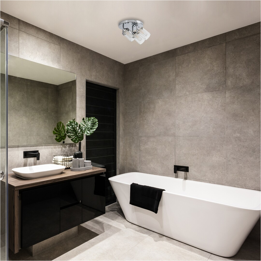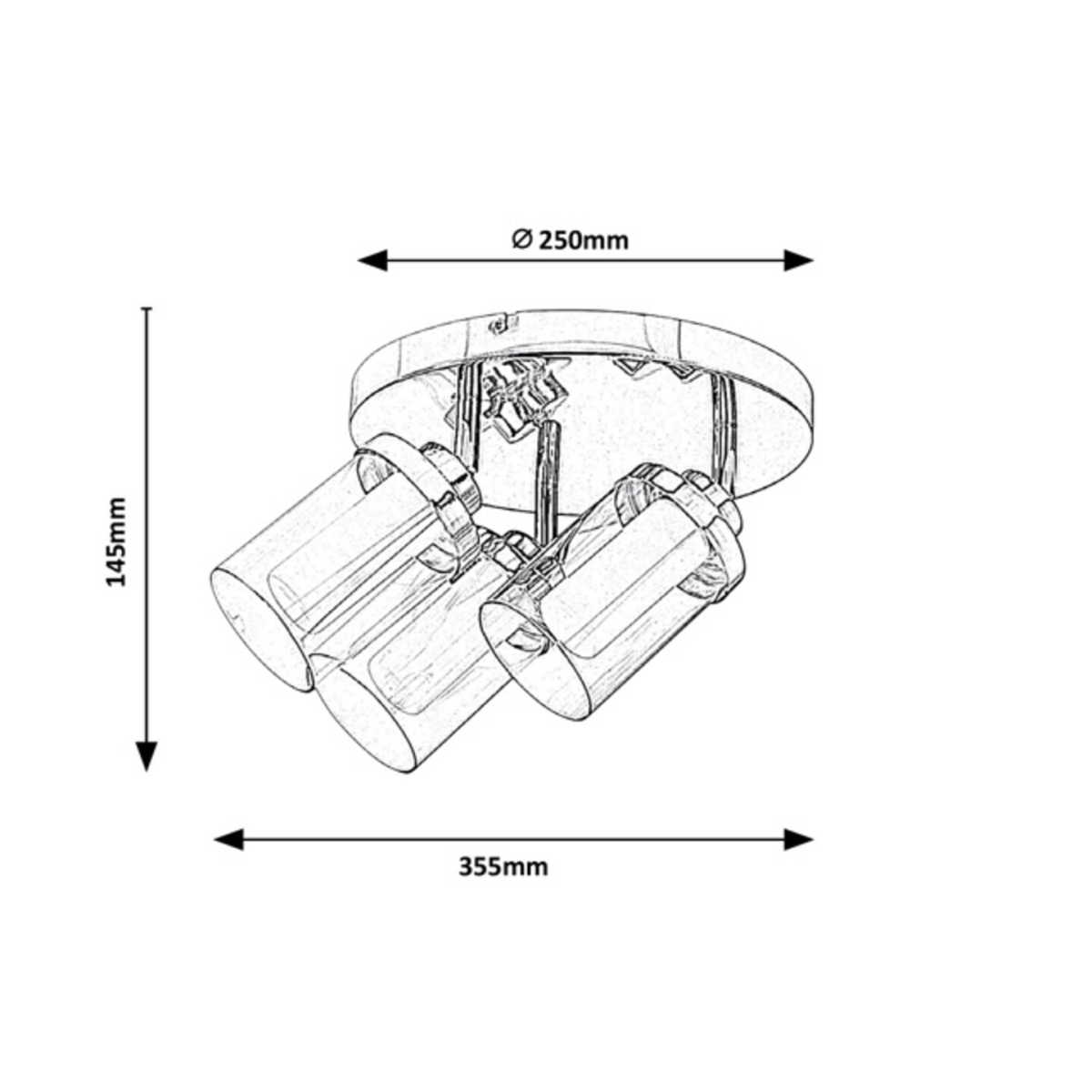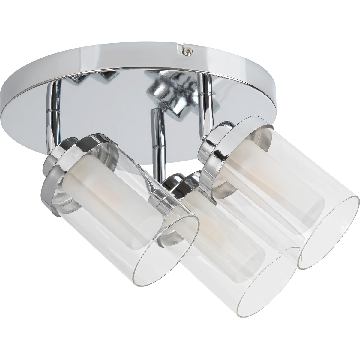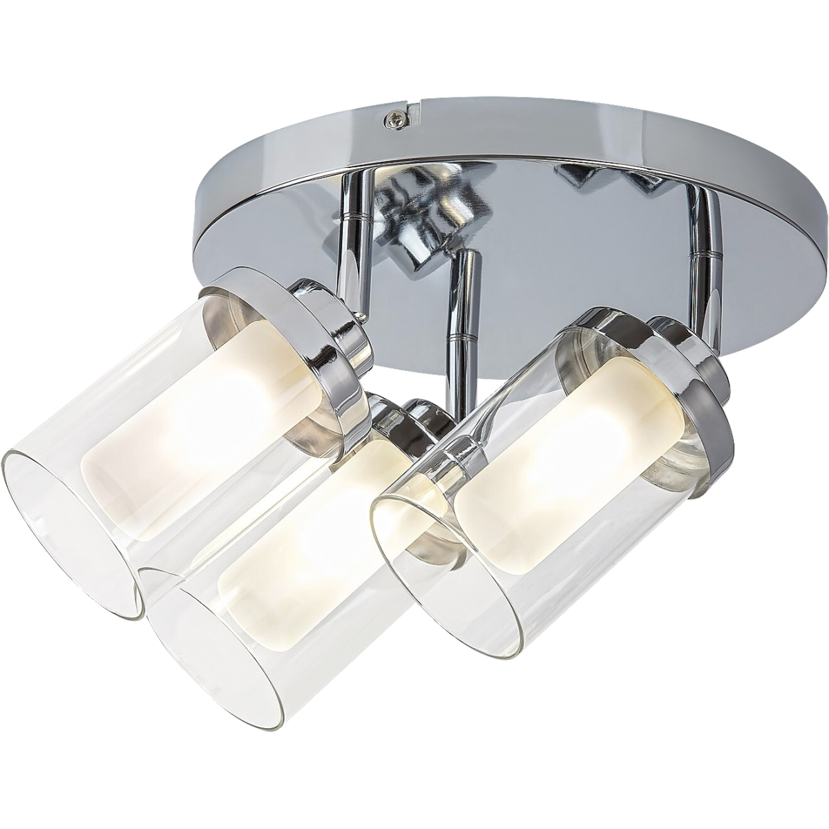 Az Aviva fürdőszobai lámpa nagyszerű választás, ha fürdőnk világítását egy modern mennyezeti lámpa segítségével szeretnénk megoldani. A krómszínű, fém lámpatestet dupla, opál és átlátszó henger alakú üvegbúrák és nagyméretű, kerek dísztalp egészítik ki. A különböző irányba tekintő lámpafejek gondoskodnak a helyiség teljeskörű bevilágításáról. A mennyezeti lámpa három darab, egyenként legfeljebb 28 W teljesítményű fényforrással használható, a foglalatok típusa G9. Ha kellemes, hangulatos megvilágítást szeretnénk a fürdőszobába, válasszunk a lámpához meleg fehér fényű fényforrásokat. Az Aviva IP44-es védettséggel rendelkezik, amely garantálja, hogy legfeljebb 1 mm átmérőjű tárgyak behatolása ellen, valamint bármilyen irányból fröccsenő víz ellen védett. A fürdőszobai lámpa méretei a következők: szélessége 355 mm, a beépítési átmérő 250 mm, a lámpa mennyezettől mért távolsága 145 mm.