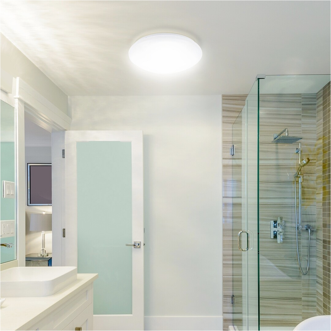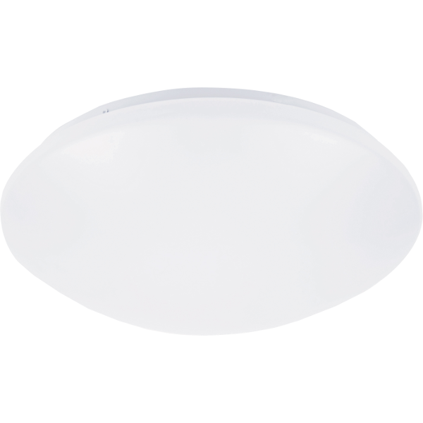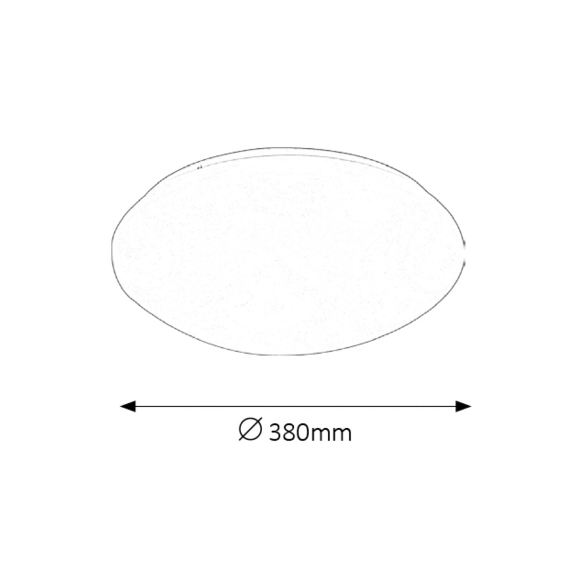 Időtlen megjelenésű fürdőszobai lámpa beépített energiatakarékos LED fényforrással. 38 cm átmérőjű, fém ház és fehér színű műanyag lámpabúra, IP44-es, azaz por és fröccsenő víz elleni védelemmel. A beépített LED fényforrás 24W teljesítmény mellett 1560 lumenes fényerőt, valamint 4000 Kelvines, természetes fehér színű fényt biztosít.