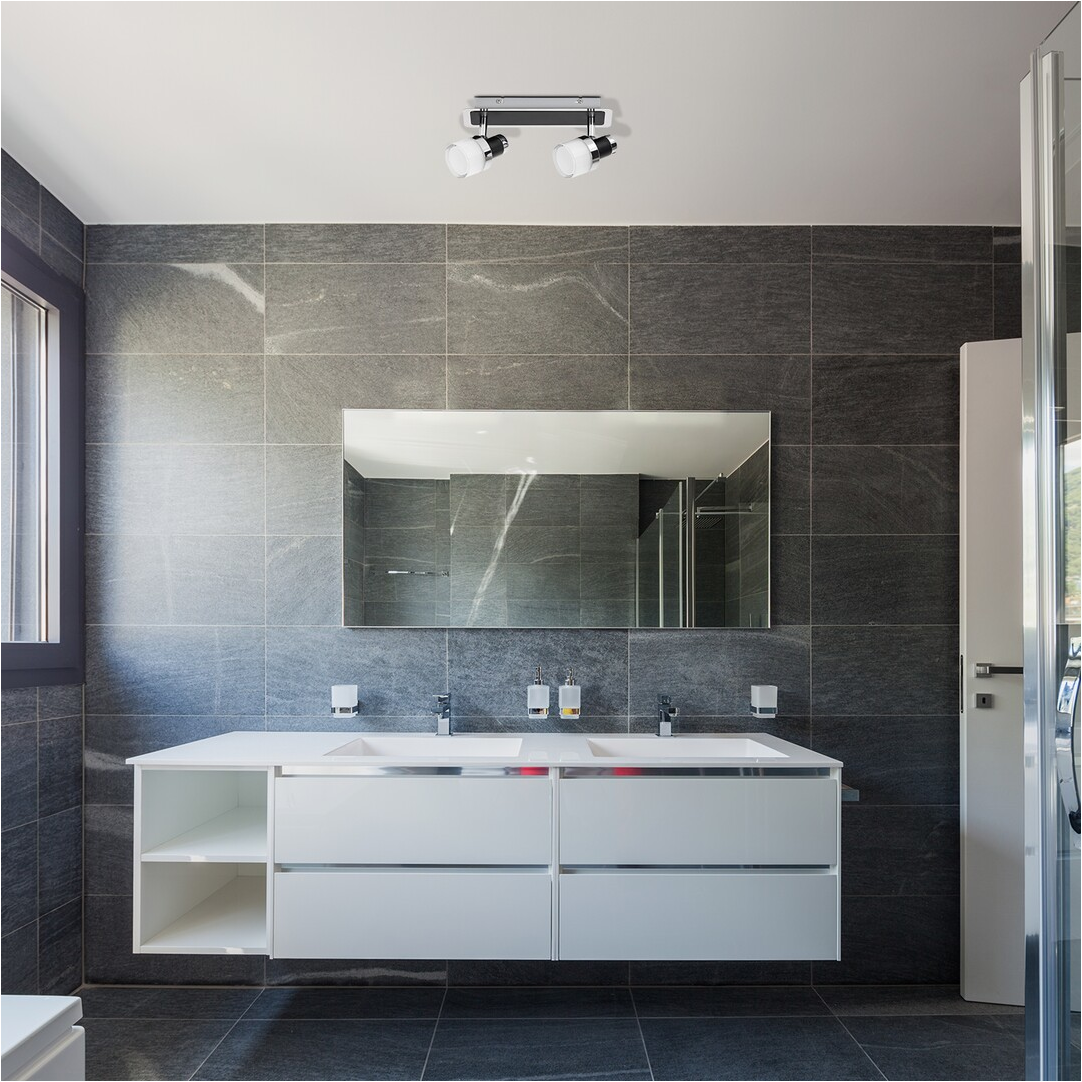 A Harold kettes fürdőszobai fali lámpa króm-fekete-opál színkombinációjával elegáns és mutatós darabja lehet modern fürdőszobánk berendezésének. A lekerekített sarkú, téglalap alakú, dupla dísztalp külön említést érdemel. A fémből és műanyagból készült modellt felszerelhetjük a zuhanyzó vagy a kád közelében: természetes fehér fénye tiszta, modern hatást kelt. A Harold beépített, energiatakarékos LED fényforrásokkal rendelkezik, melyek összteljesítménye 10 W, fényerejük 800 lumen, élettartamuk pedig 25000 óra. A fényforrások színhőmérséklete 4000 K. Ez a fürdőszobai lámpa IP44-es védettséggel rendelkezik.. A Harold kettes fali lámpa méretei a következők: szélessége 250 mm, magassága 100 mm, faltól való távolsága 140 mm.