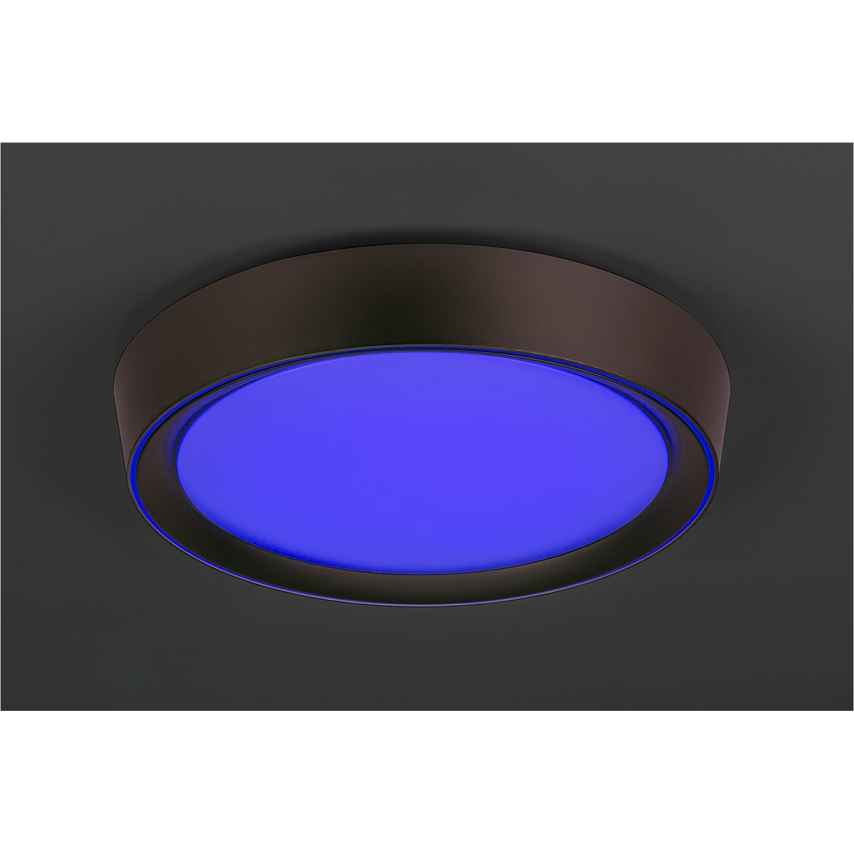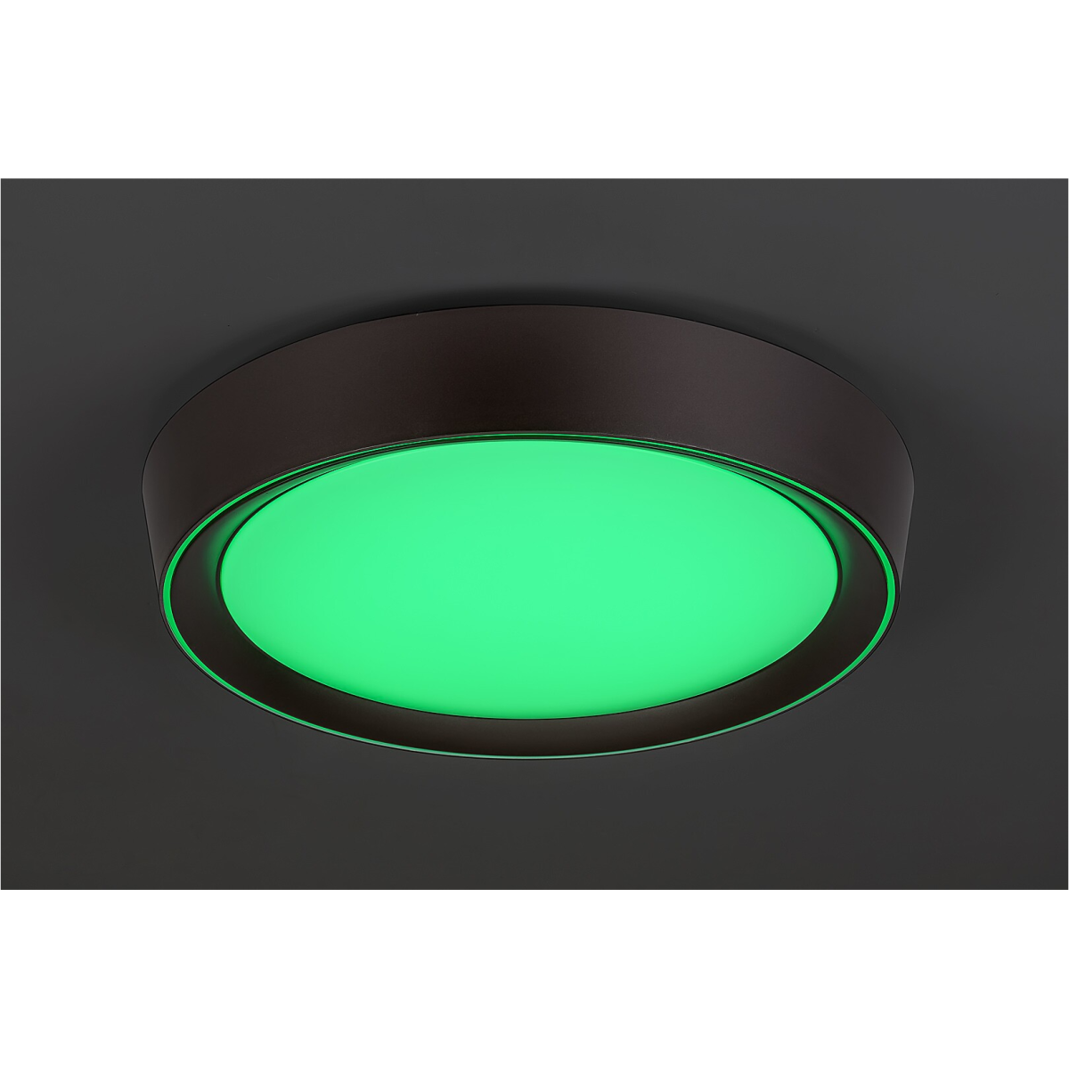 A barna-fehér színkombinációban készült, kerek Mokka mennyezeti lámpa remek választás lehet modern nappalinkba, hálószobánkba vagy dolgozószobánkba. A minimál stílusú modell rengeteg hasznos és kellemes funkcióval örvendezteti meg használóját. A Mokka fém lámpatestét akril búra egészíti ki, a lámpa beépített LED fényforrással rendelkezik. A fényforrás teljesítménye 24 W, fényereje 2000 lumen, élettartama pedig 30 000 óra. A mennyezeti lámpa dimmelhető, azaz fényereje távirányító segítségével tetszés szerint változtatható, színhőmérséklete pedig 3000-6000 K között állítható fali kapcsoló, illetve távirányító segítségével. Ezenkívül beállíthatunk RGB világítást is, azaz váltogathatjuk a színeket. További extrák a fali kapcsolóval, illetve távirányítóval vezérelhető memória funkció, az időzítő, valamint az éjszakai funkció. A Mokka mennyezeti lámpa átmérője 410 mm, a mennyezettől mért távolsága 100 mm.