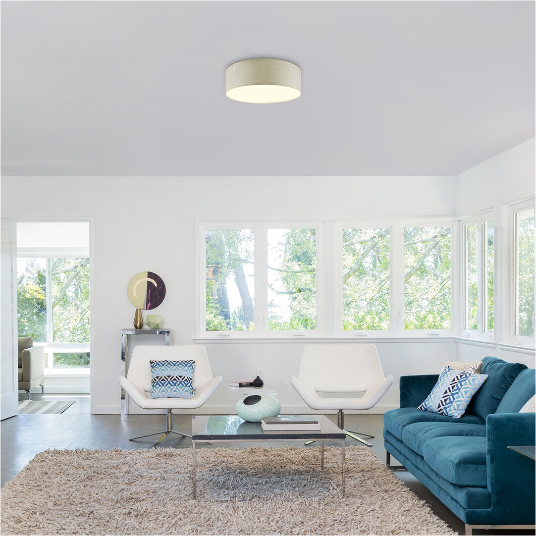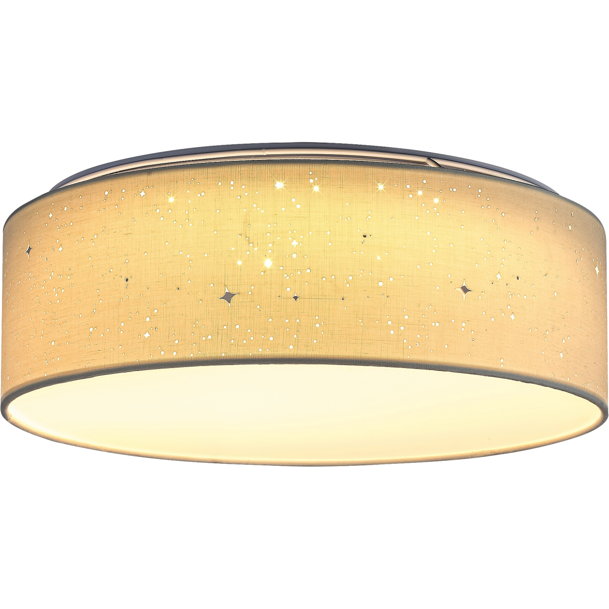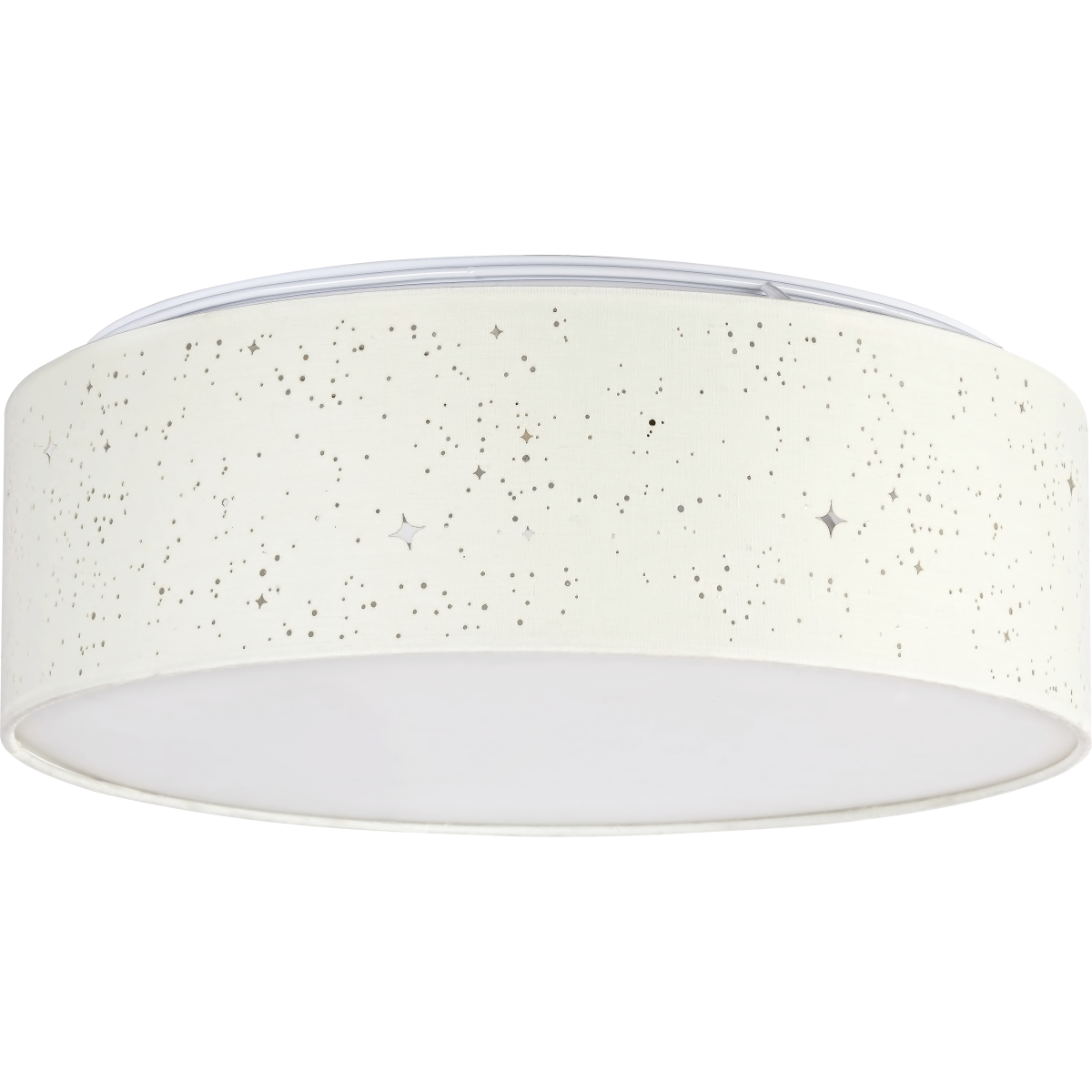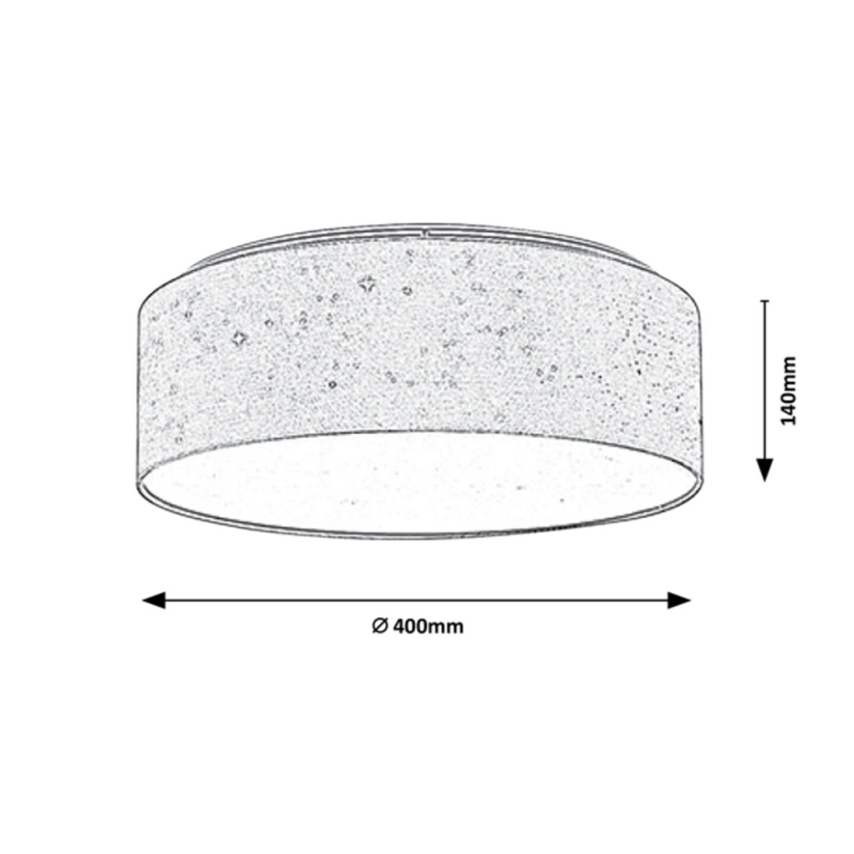 A krémszín-fehér színkombinációban készült Otilia mennyezeti lámpa szinte bármely modern nappali, hálószoba vagy dolgozószoba berendezésének kellemes darabja lehet. Az egyszerű, henger alakú lámpatest anyaga fém, míg a fényes, csillagos mintával átszőtt búra textilből készül. A nagyméretű, kerek modell alul teljes felületén engedi kiáramlani a fényt, így szépen bevilágítja az egész szobát. Az Otilia beépített LED fényforrást tartalmaz, amelynek teljesítménye 22 W, fényereje 970 lumen, élettartama 25 000 óra. A fényforrás színhőmérséklete 3000 K, ennek megfelelően meleg fehér fénnyel világít, meghitt, otthonos hangulatot árasztva. A kerek mennyezeti lámpa méretei a következők: átmérője 400 mm, magassága 140 mm, mennyezettől mért távolsága pedig ugyancsak 140 mm.