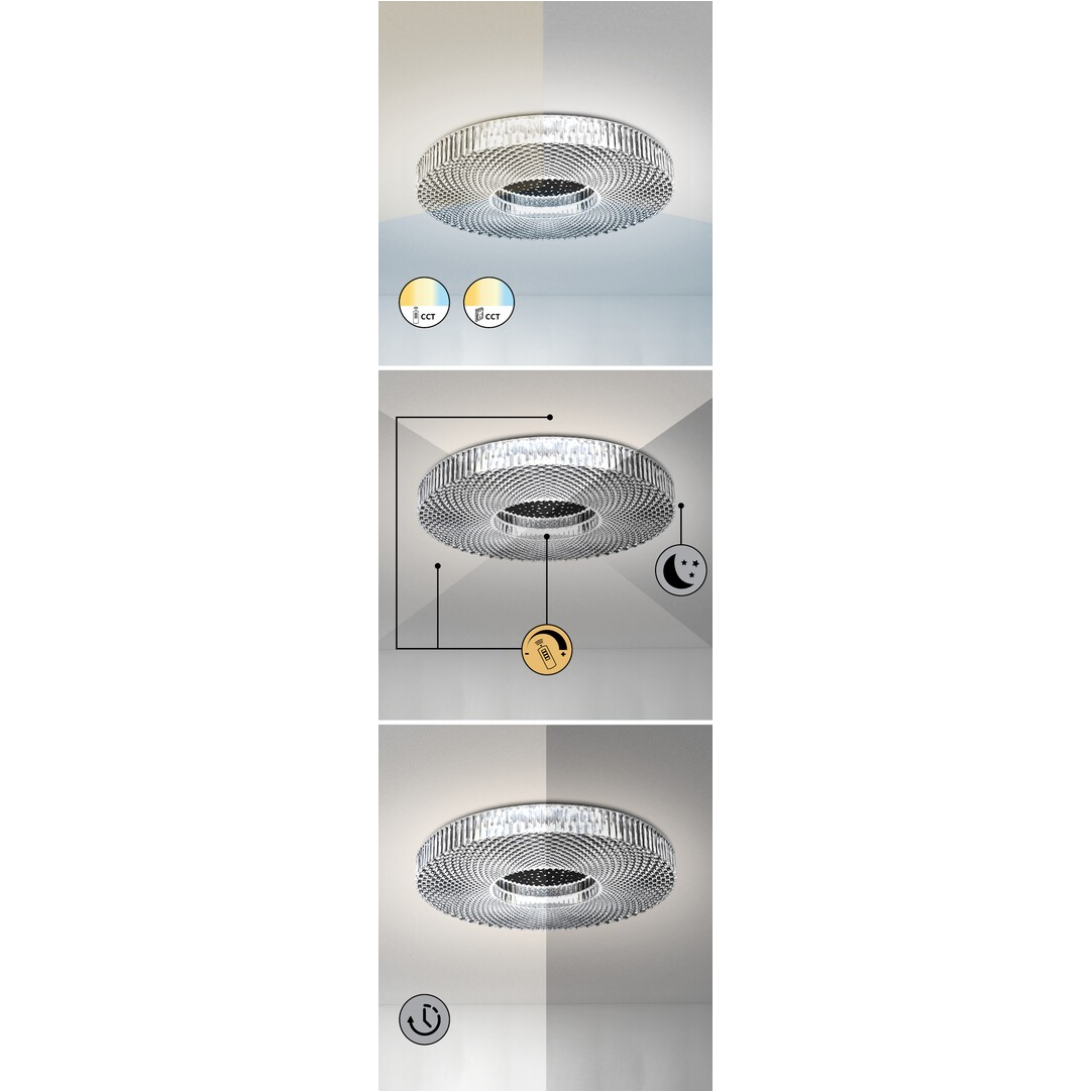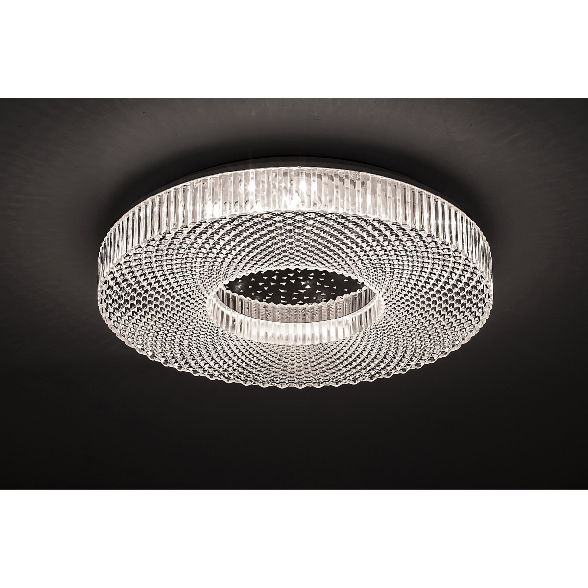A Ziva mennyezeti lámpa modern nappalink, hálószobánk vagy dolgozószobánk berendezésének feltűnő, egyszersmind sokoldalú darabja lehet. A krómszínű fémből és átlátszó műanyagból készült, kerek modell energiatakarékos, beépített LED fényforrással rendelkezik. A fényforrás teljesítménye 36 W, fényereje 2340 lumen, élettartama pedig 25 000 óra. A mennyezeti lámpa színhőmérséklete fali kapcsoló, illetve távirányító segítségével 3000-6000 K között állítható, azaz képes meleg, természetes vagy hideg fehér fénnyel világítani. A távirányítóval további funkciókat is működtethetünk: a Ziva dimmelhető, azaz fényereje változtatható, ezenkívül memória funkcióval is rendelkezik. További extrák az időzítő és az éjszakai funkció. A mennyezeti lámpa átmérője 400 mm, mennyezettől mért távolsága 83 mm.