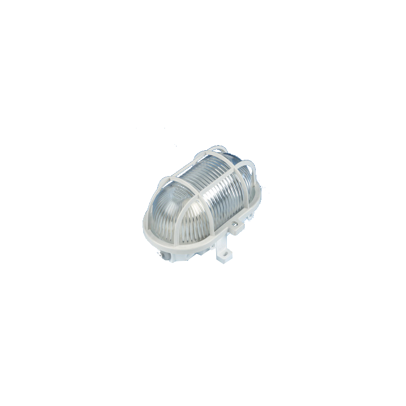 Műanyagrácsos, ovális hajólámpa 60 W IP 44 Színe: fehér