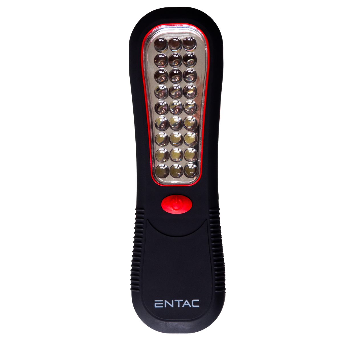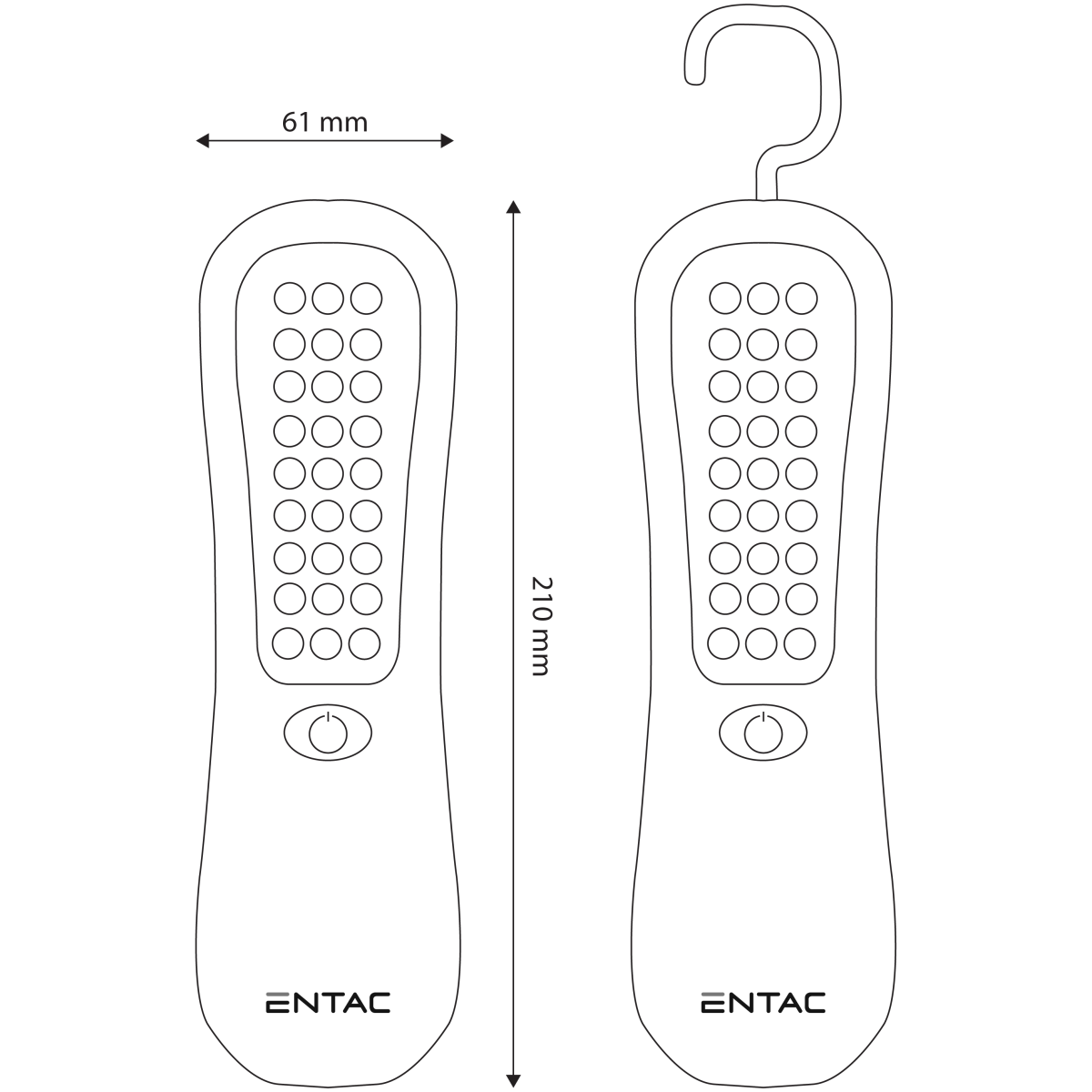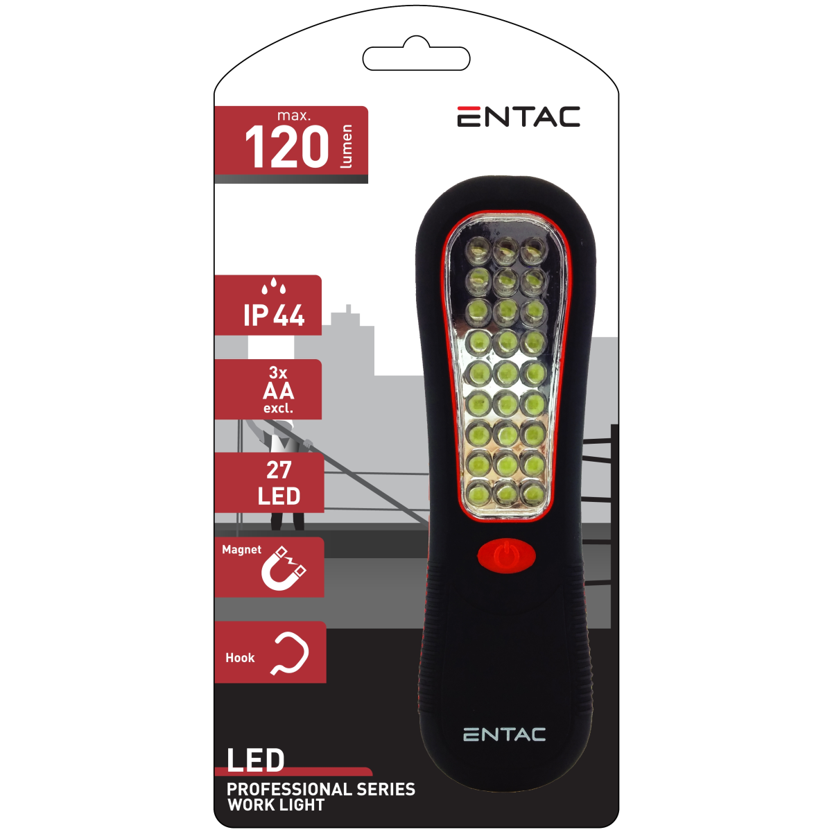 A kényelmes szerelésért válassza az Entac 27 LED-es szerelőlámpáját. Szerelés közben mindig vannak olyan helyzetek, eldugott részek, amikor a helyiség fő fényforrása nem elegendő, nem tudja bevilágítani a szerelésre váró területet, legyen az kültéren vagy beltéren. Ilyenkor használhatjuk ki igazán az Entac multifunkcionális szerelőlámpáit. A 27 LED-es szerelőlámpánk akasztóval és mágnessel van ellátva, hogy segítségével minél több lehetőséget kínáljunk az igényeknek megfelelő elhelyezésére, így biztosan a kívánt terület kerül megvilágításra. Kis mérete biztosítja a praktikusságot és a hordozhatóságot. IP44-es tulajdonságának köszönhetően rendkívül időtálló és nedvesebb időjárásban is használható. A termék 27 darab, 1W teljesítményű és 120 lumen fényerejű LED fényforrással működik. 3 darab AA-s elemmel üzemeltethető, működési ideje legfeljebb 6 óra. A csomagolás nem tartalmazza az elemet.