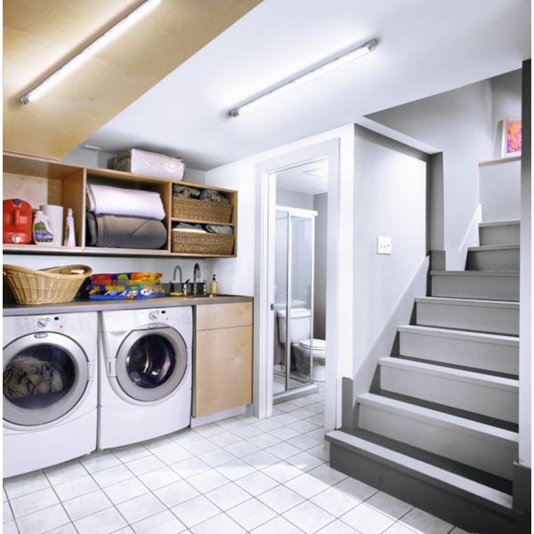 Mozgásérzékelővel ellátott por és páramentes lámpatest, alkalmas egy helyiség fővilágításának biztosítására pl. előterek, raktárak stb.