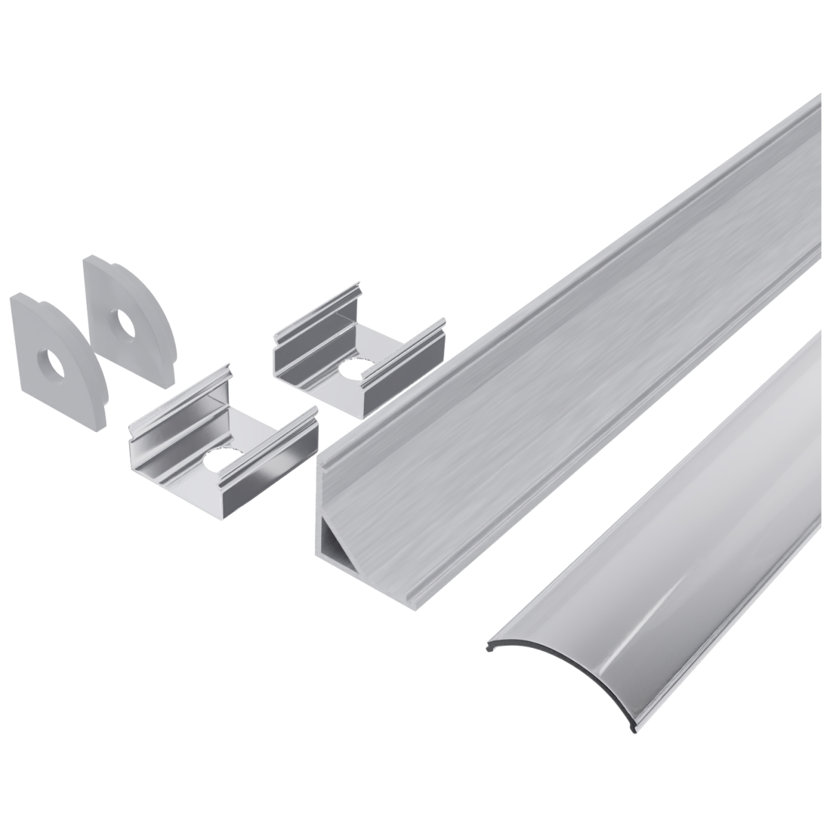 Az "Avide Alu Profil "V" Sarok Áttetsző búrával 1m" egy 1 méter hosszú alumínium profil. Ez a profil kiváló minőségű és tartós anyagból készült, amely ideális a különböző építési és dekorációs projektekhez. A "V" alakú kialakításnak köszönhetően könnyen illeszkedik a sarkokhoz, és lehetővé teszi a sima és esztétikus kialakítást. A profilhoz tartozó áttetsző búra további védelmet nyújt a belső tartalomnak, és egyúttal szép diffúz fényt biztosít. A profilhoz tartozik 1 db opál búra, amely szép és egyenletes fényeloszlást biztosít, továbbá 2 db végzáró dugó és 2 db rögzítő klip. A profil hossza 1 méter. A profil külső keresztmetszeti mérete: 15,8mm x 15,8mm; belső sarok átló: 10,5mm