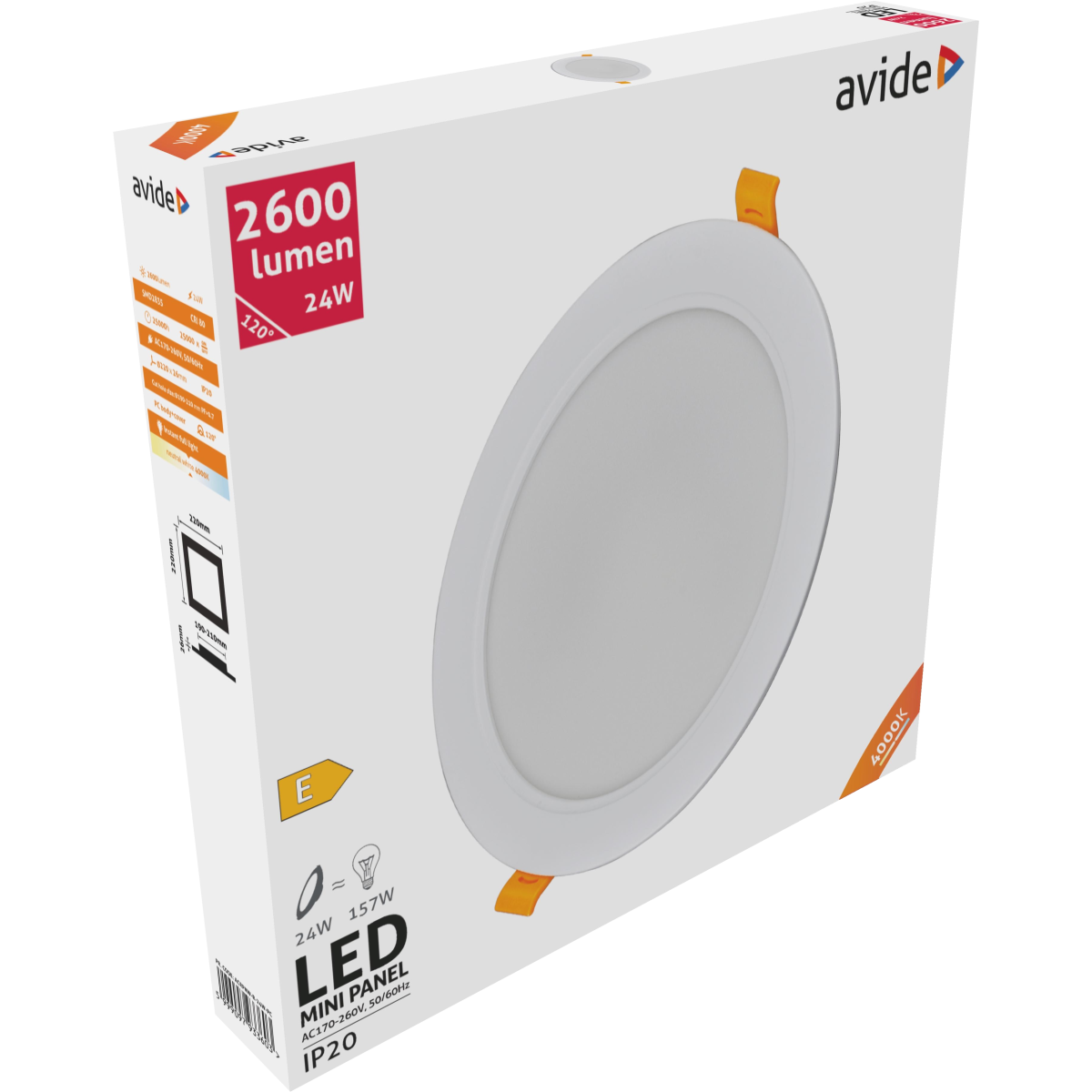 AVIDE BEÉPÍTHETŐ MENNYEZETI LÁMPA LED 24W 2600LM 4000K NW KEREK MŰANYAG
