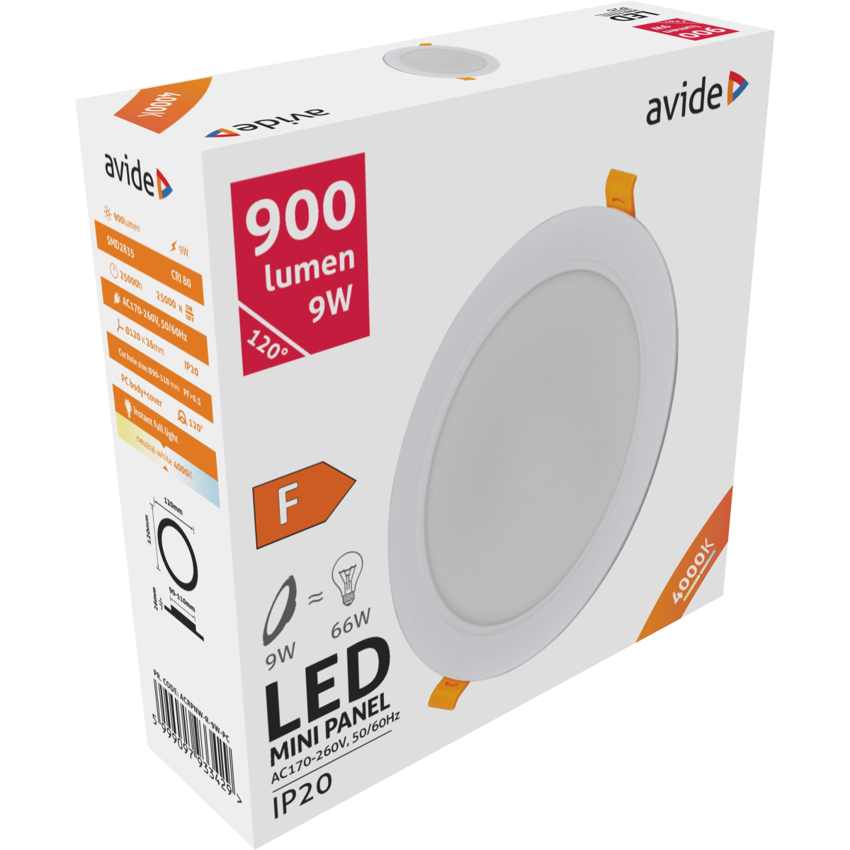AVIDE BEÉPÍTHETŐ MENNYEZETI LÁMPA LED 9W 900LM 4000K NW KEREK MŰANYAG