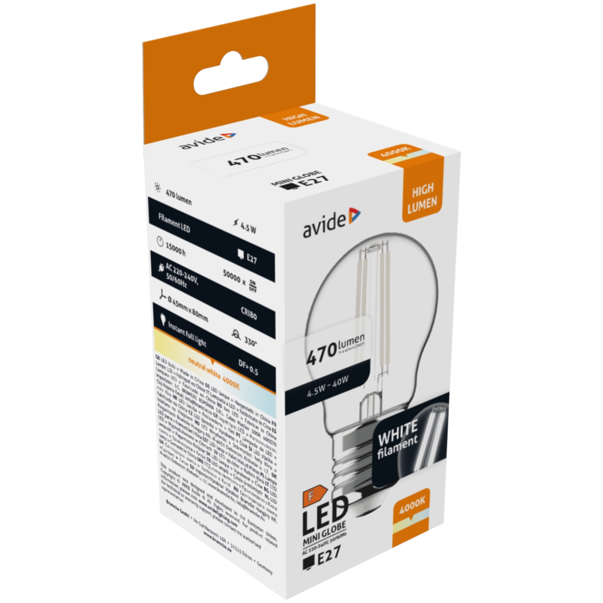 Fedezd fel az Avide LED White Filament Mini Globe izzó előnyeit, amely ötvözi a hagyományos megjelenést és a korszerű, energiatakarékos LED technológiát. Meleg, természetes hatású fénye barátságos légkört teremt otthonodban, miközben hosszú élettartamot és alacsony fogyasztást biztosít.