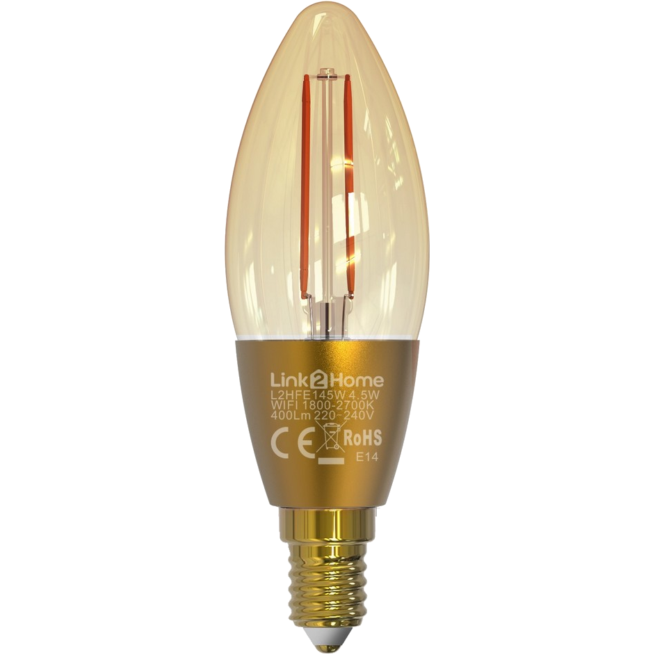 A Link2Home izzólámpák egy gyönyörű rusztikus aranyszínű lámpát ötvöznek a modern vezérléssel. Irányítsa otthoni hangulatát alkalmazásvezérléssel vagy hangvezérléssel. A Wi-Fi vezérelhető Link 2 Home okos E14-es lámpa LED technológiát használ, hogy modern kivitelben szabályozza a fényt a szobában. Több lámpát is csoportosíthat, hogy egy szobát, egy házat vezérelhessen, vagy minden lámpát külön-külön vezérelhet. Nincs szükség hubra.