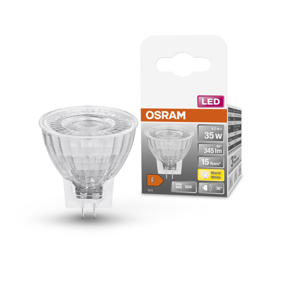 LED star spot MR11/GU4. Teljesítmény: 4,2 W. Hasznos fényáram: 345 lm. Színhőmérséklet: 2700 K. Fénynyílásszög: 36°. A LED fényforrások a hagyományos fényforrásokat helyettesítő magas hatékonyságú LED-ek. Alacsonyabb fogyasztásuknak és hosszabb élettartamuknak köszönhetően jelentős megtakarítást eredményeznek.