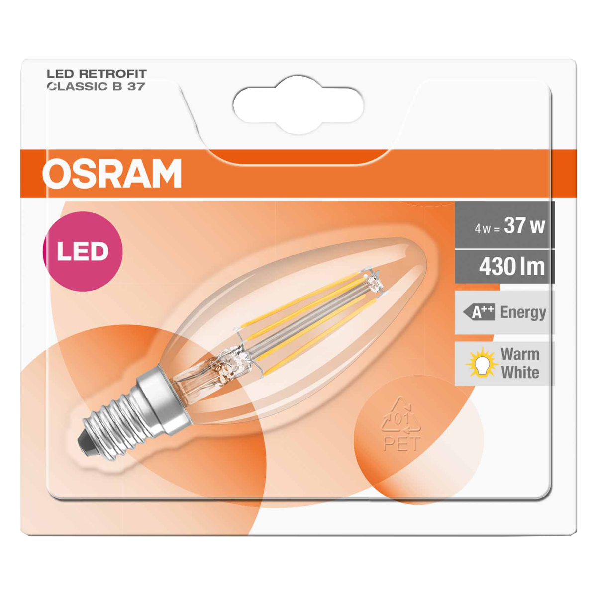 "LED RF CLASSIC B 40" gyertya izzó, melegfényű, 4 W-os, E14 foglalatú.