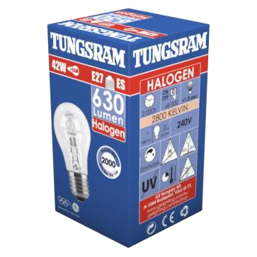Tungsram energiatakarékos halogén izzó, normál formájú. - 42W - E27