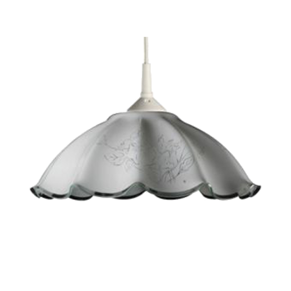 Fehér, virágmintás üveg függeszték, E27 foglalattal. - Átmérő: 330 mm - Magasság: 860 mm