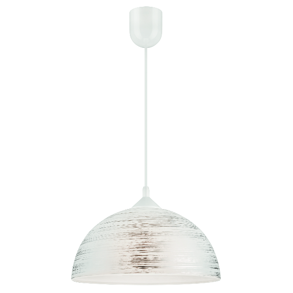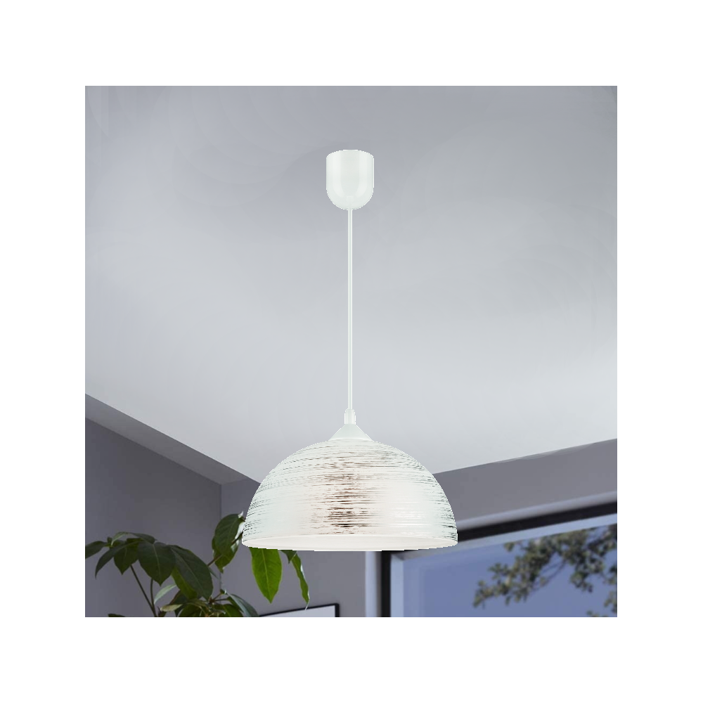 A fehér/ezüst színű függeszték E27-es foglalattal rendelkezik, mely maximum 60W fényforrással üzemeltethető.