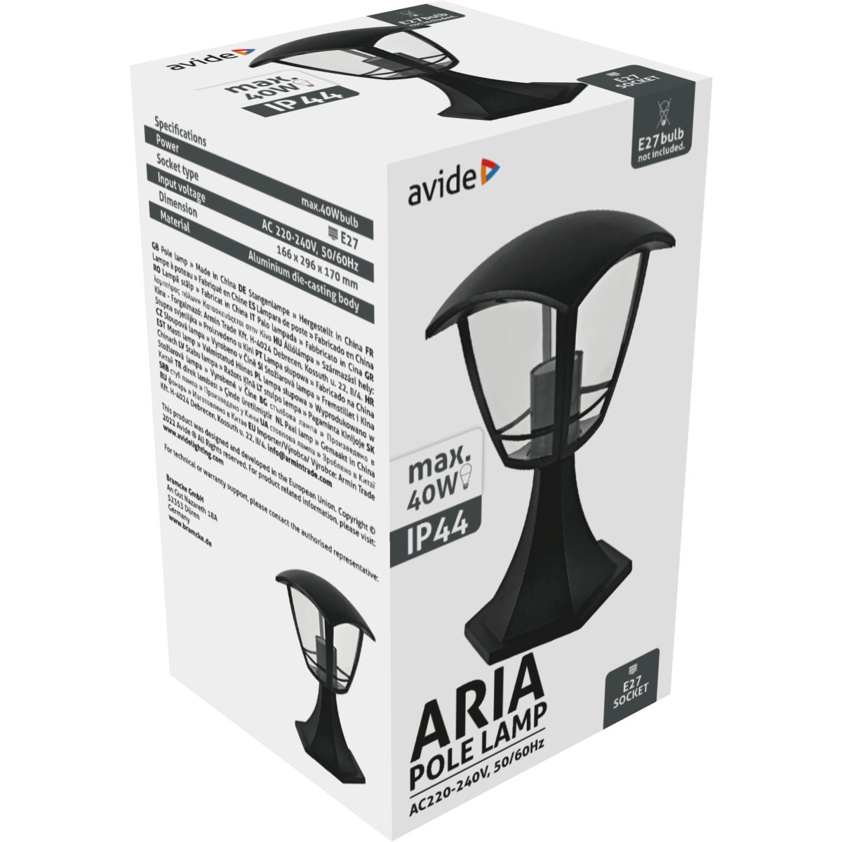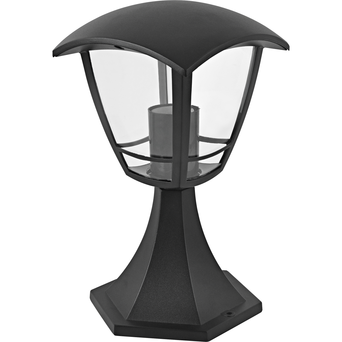 Fekete színű alumínium házas állólámpa beépített E27 foglalattal, kültéri használatra is.