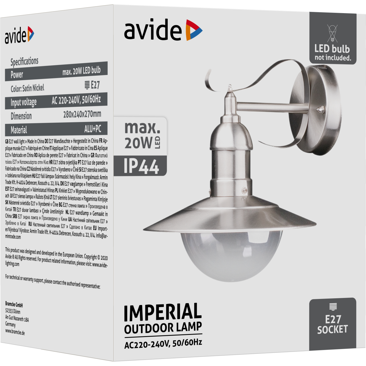 AVIDE IMPERIAL KÜLTÉRI FALI LÁMPA E27 IP44 28X24X27 CM ROZSDAMENTES ACÉL