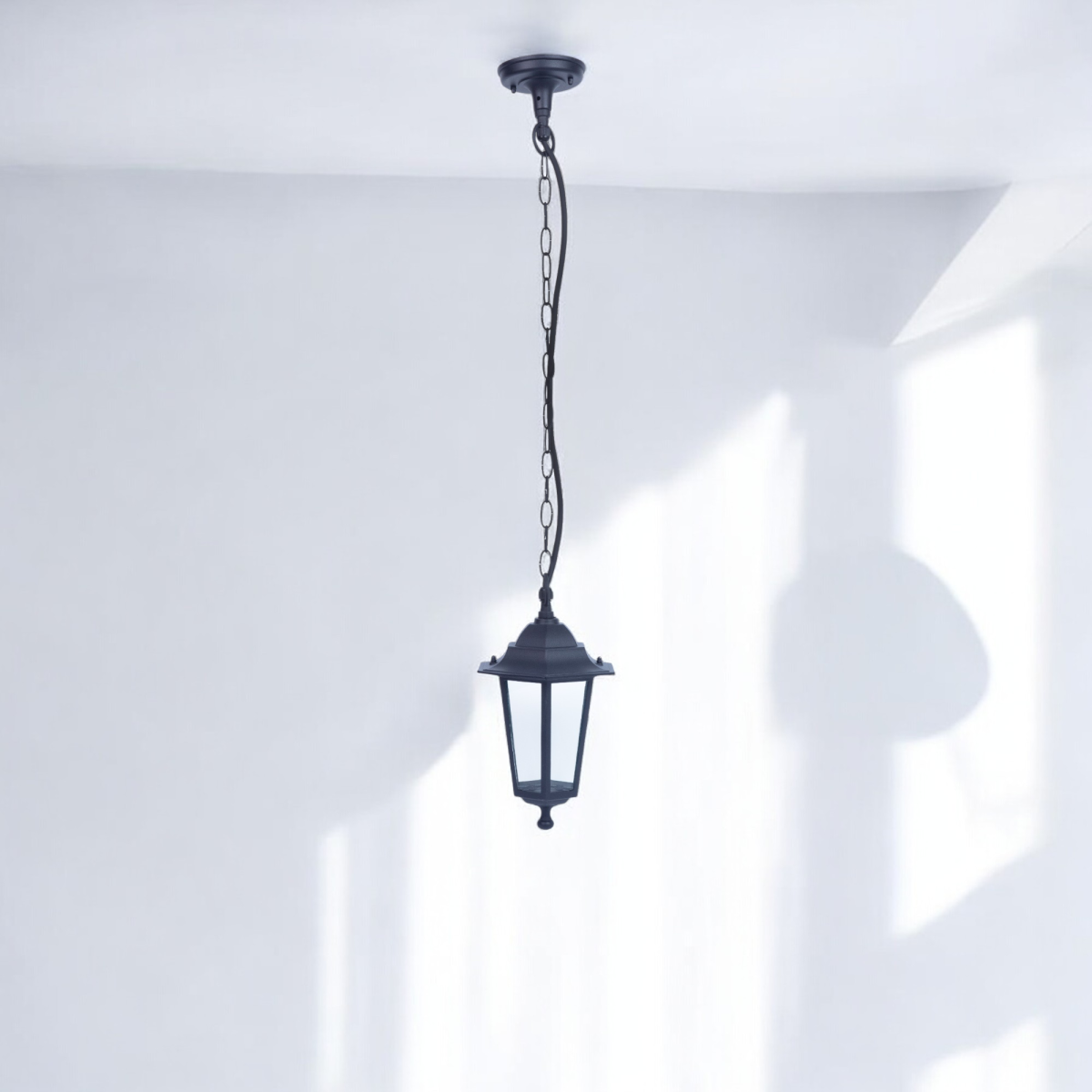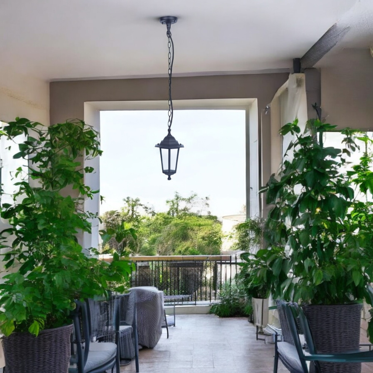 Ez a kültéri láncos függeszték modern fekete színével és átlátszó üveg burájával esztétikus megjelenést kölcsönöz a teraszon, erkélyen vagy a kertben. Az alumínium ház és IP44-es védettség biztosítja a megbízható használatot esős időben is. E27 foglalatának köszönhetően könnyen választhatsz a kívánt fényerőhöz és hangulathoz megfelelő fényforrást.