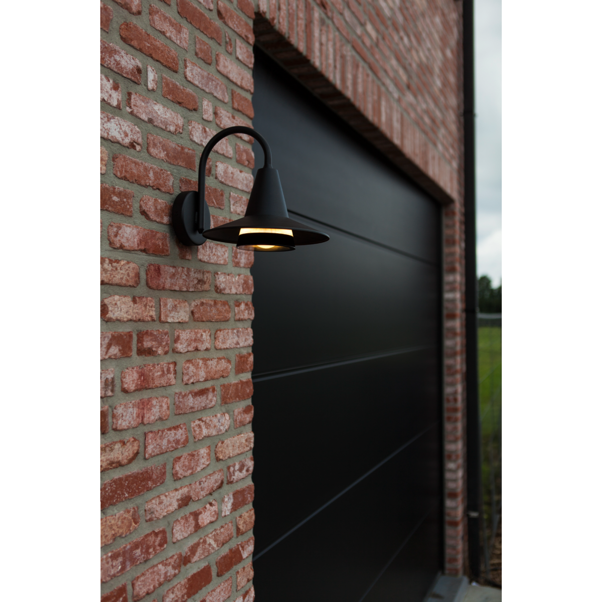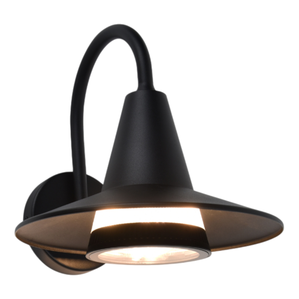 A Lutec Swan kültéri fali lámpa időtálló formatervezésével és letisztult fekete színével tökéletesen illeszkedik bármilyen kültéri környezethez.