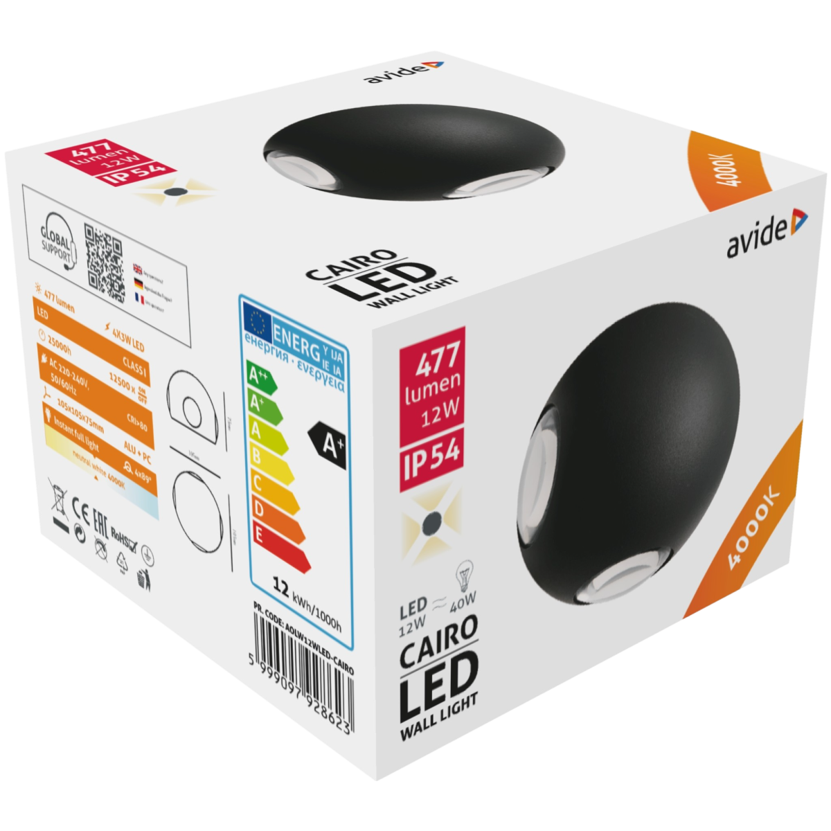 Avide Cairo 4 irányú LED 12W 477 lm NW kupola fekete kültéri fali lámpa – látványos megvilágítás négy irányból