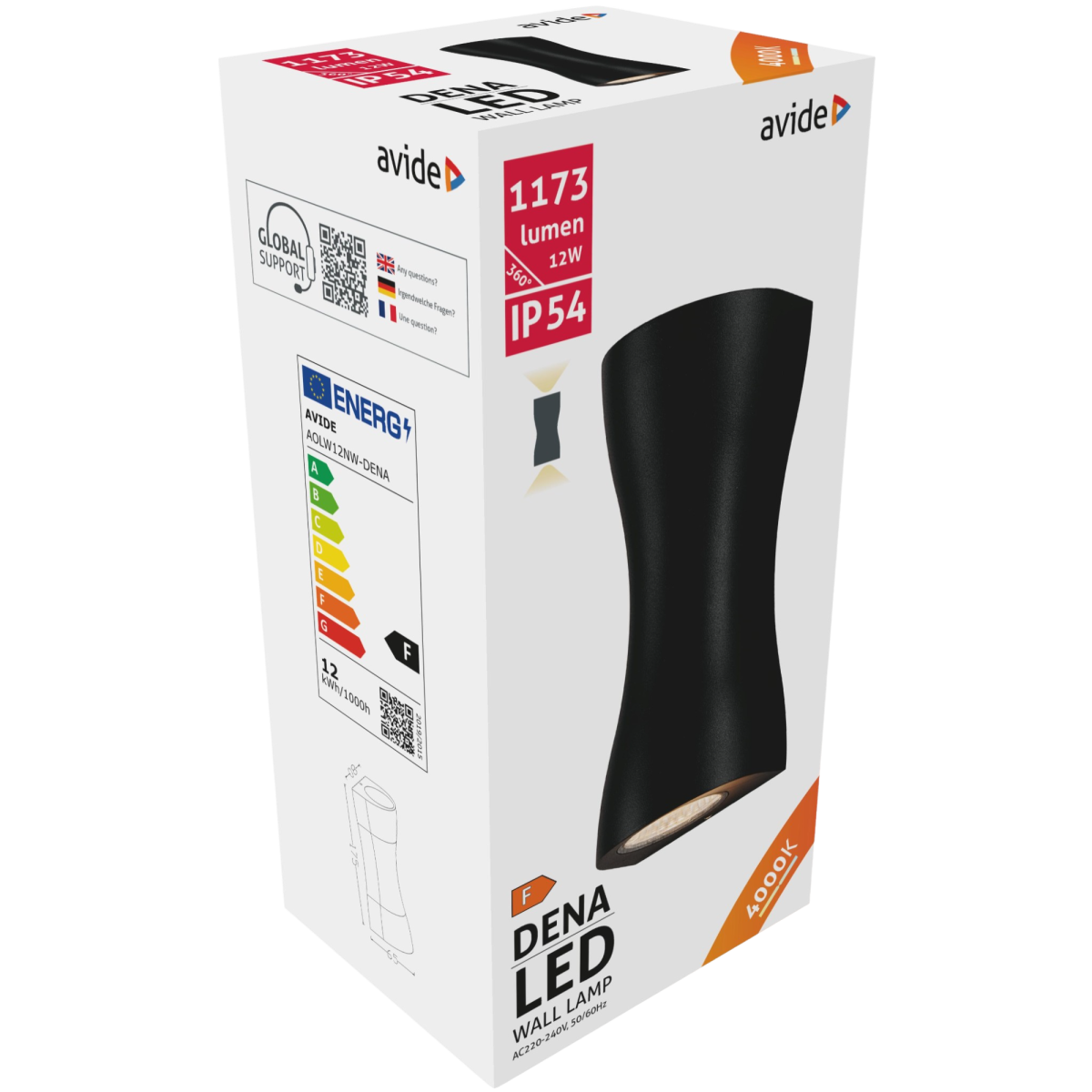 Biztonságos és stílusos megvilágítás a szabadban! Az Avide Dena LED kültéri fali lámpa 12 wattos teljesítményével erőteljes fényt biztosít, miközben energiatakarékos megoldást kínál. A semleges fehér fény természetes megvilágítást ad, amely ideális bejáratok, teraszok, kerti utak vagy akár ipari területek számára is.