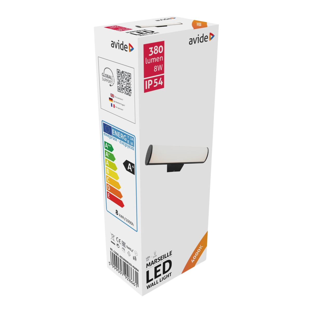 Az Avide Marseille vízszintes elrendezésű LED kültéri fali lámpa modern, letisztult formatervezésével diszkréten illeszkedik otthonod vagy üzleted külső falaira. A 8 wattos teljesítmény és 380 lumen fényerő energiatakarékos, mégis hatékony megvilágítást biztosít. Semleges fehér (NW) színhőmérséklete természetes fényt ad, amely jól használható általános kültéri világításként, szemkímélő módon.