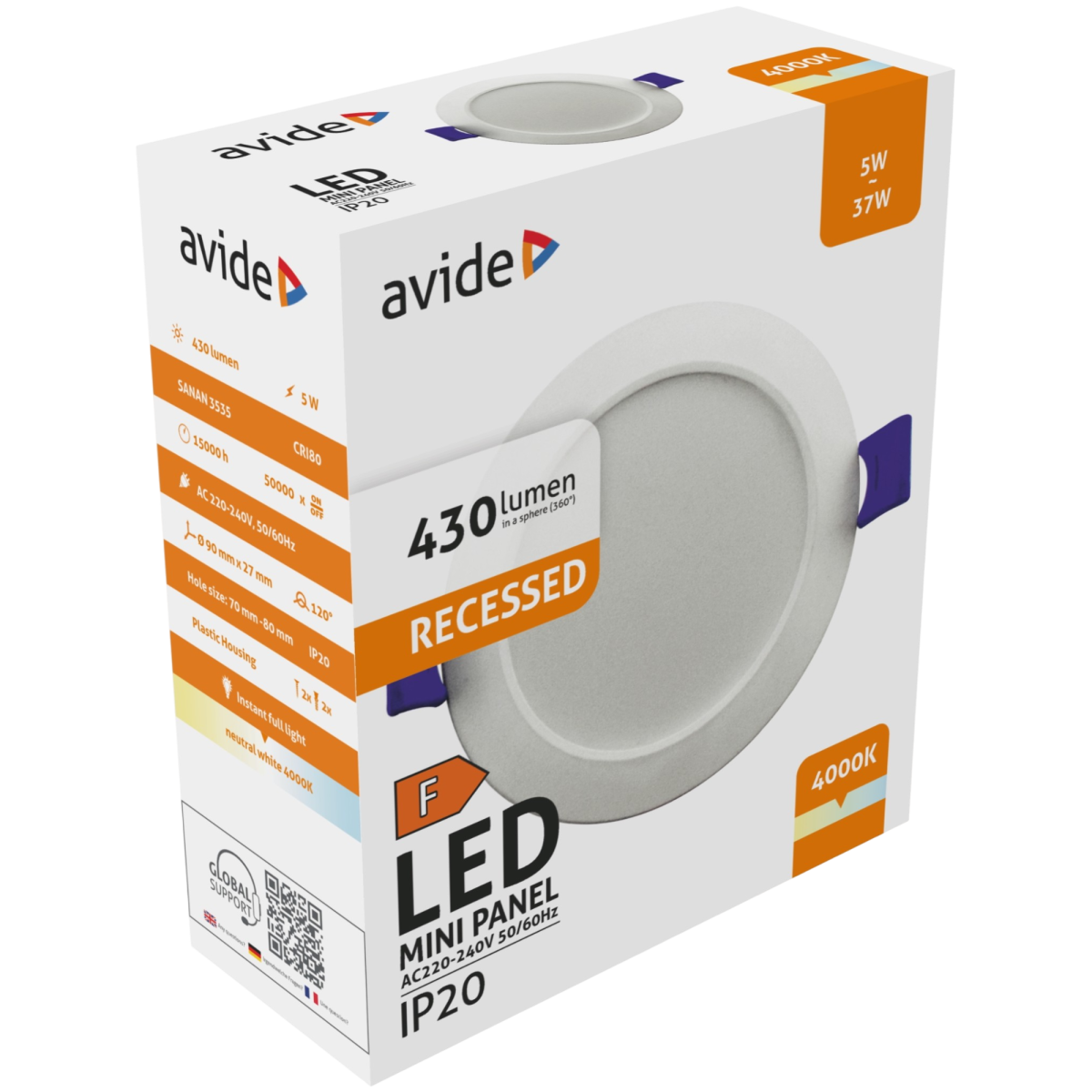 Az Avide LED beépíthető mennyezeti lámpa ideális megoldás, ha kis fogyasztású, ugyanakkor hatékony világításra van szükséged otthon vagy irodában. A 4000 K színhőmérséklet természetes hatású, semleges fehér fényt biztosít, amely nem túl hideg és nem túl meleg – így alkalmas általános világításra a legtöbb beltéri helyiségben.