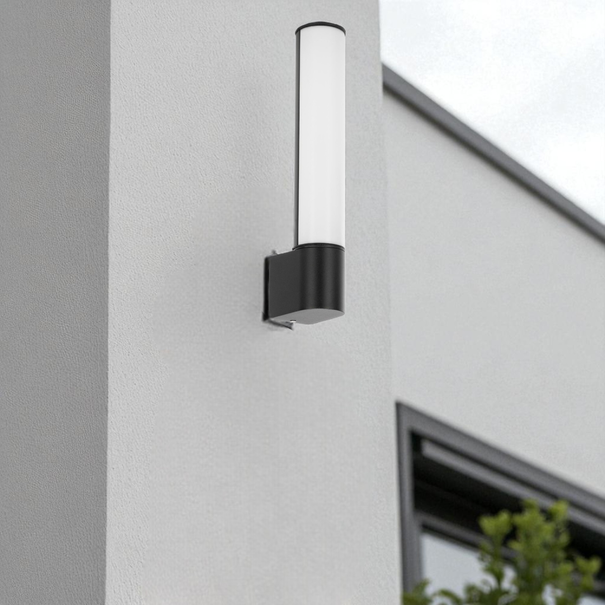 A fekete színű, IP54 védettségű burkolat védelmet nyújt a por és fröccsenő víz ellen, így az időjárás viszontagságai között is megbízhatóan használható. A hosszúkás, modern forma nemcsak funkcionális, hanem esztétikailag is feldobja a külső falakat.