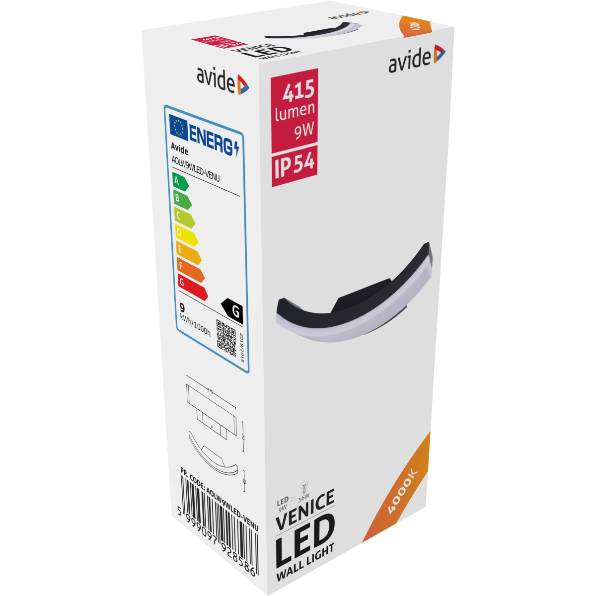 AVIDE VENICE LED KÜLTÉRI FALI LÁMPA 9W 415LM 4000K IP54 NW HOMORÚ 27,5CM FEKETE