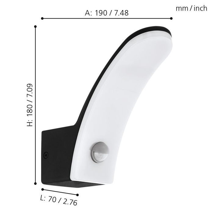 Fali LED lámpa "Fiumicino" mozgásérzékelős, fekete, fehér színben. Ideális választás garázsok, autóbeállók, kertek, bejáratok és oldalfalak megvilágításához.