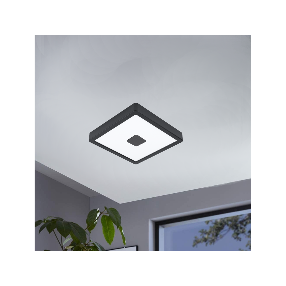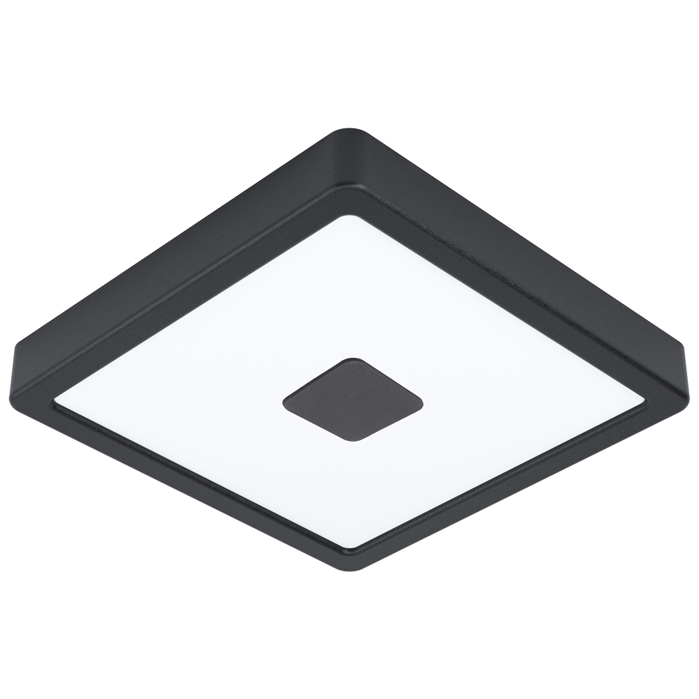 Kültéri LED mennyezeti lámpa 21x21 cm méretben, fekete színben.